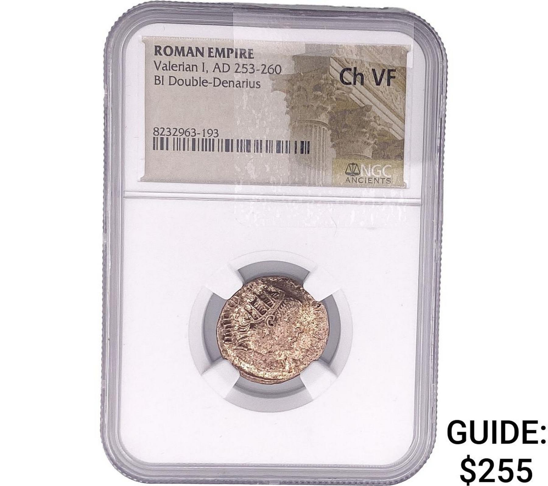 Roman Valerian I, AD 253-260 BI Double-Denarius NGC ChVF