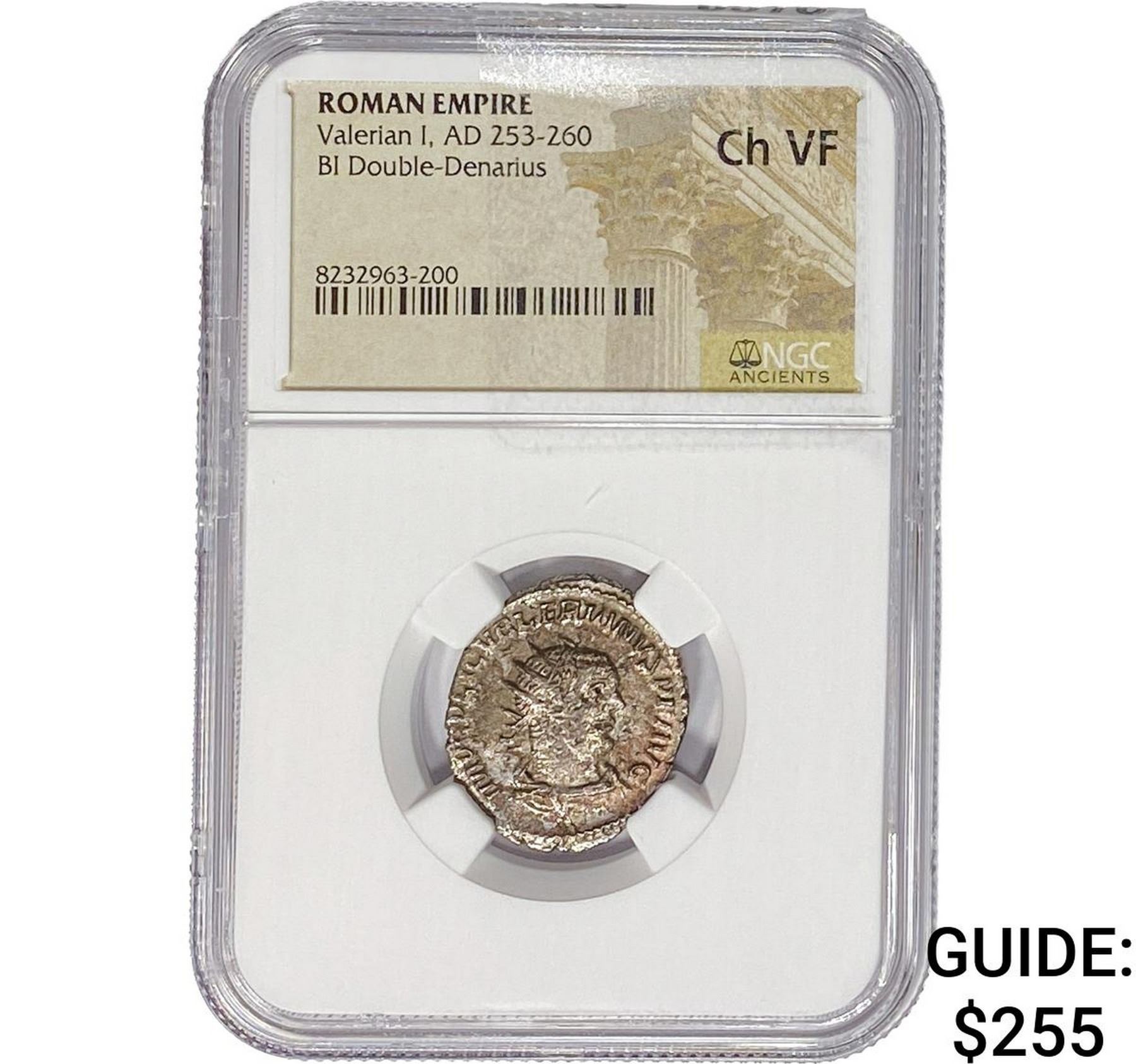 Roman Valerian I, AD 253-260 BI Double-Denarius NGC ChVF