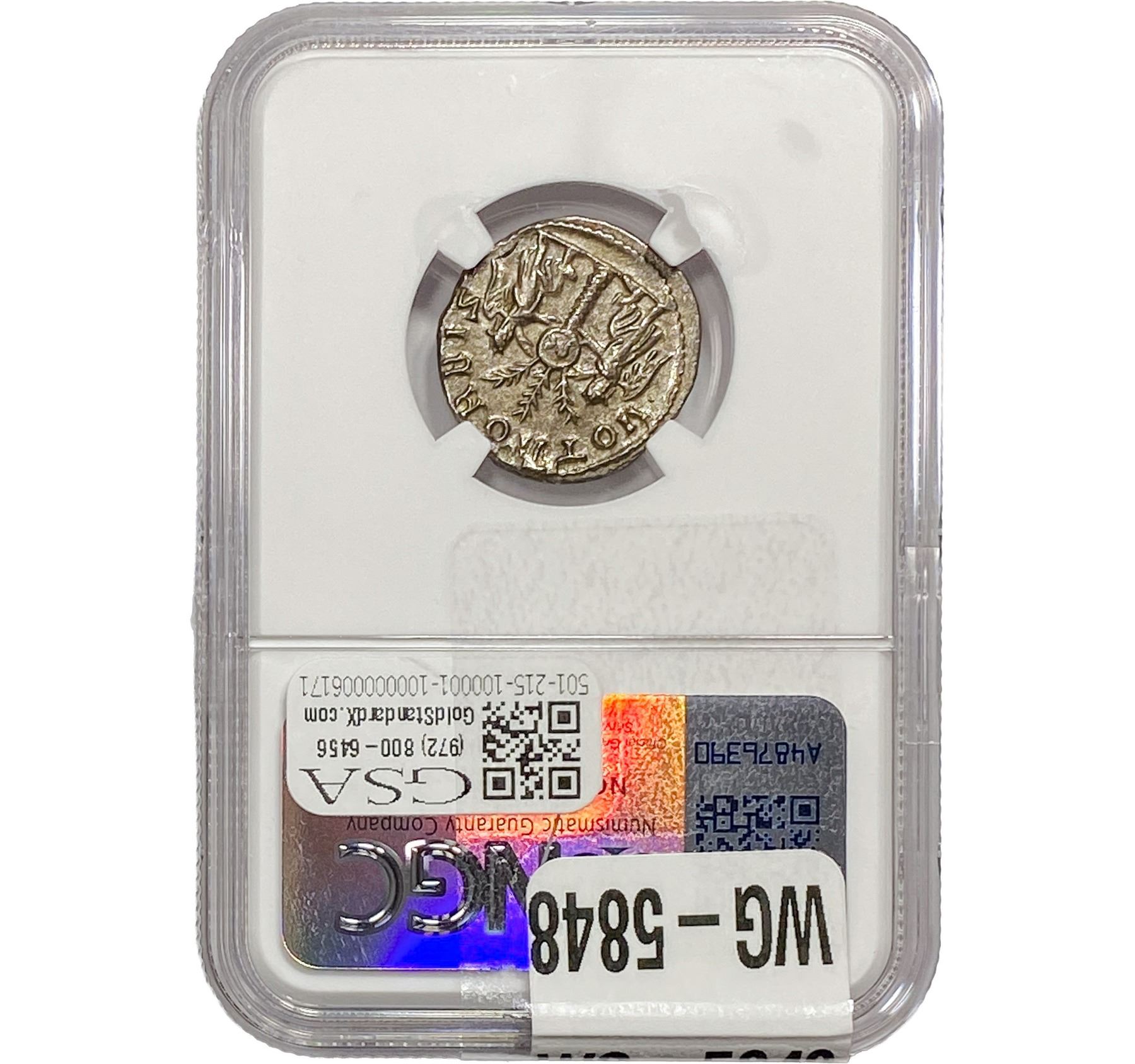 COINS AND CURRENCY LISTED IN GSA’S CATALOG AS GRADED AND ENCAPSULATED BY PCGS, NGC, ANACS, ICG, PCGS CURRENCY, PMG, PCGS BANKNOTE GRADING, CMC OR ANY OTHER THIRD-PARTY GRADING SERVICE ARE LIKEWISE SOLD “AS-IS” EXCEPT AS EXPRESSLY SET FORTH HEREIN. ALL THIRD-PARTY GRADING SERVICE GUARANTEES, INCLUDING AUTHENTICITY, ARE THE SOLE RESPONSIBILITY OF THE THIRD-PARTY GRADING SERVICE AND NOT WARRANTIES OR GUARANTEES OF GSA. BIDDERS SHOULD CONTACT THESE THIRD-PARTY GRADING SERVICES DIRECTLY WITH RESPECT TO ANY CLAIMS OR QUESTIONS THEY MAY HAVE CONCERNING THEIR GUARANTEES AND WARRANTIES. BIDDERS ACKNOWLEDGE AND AGREE THAT AUCTIONEER IS NOT BOUND BY OR LIABLE FOR ANY OPINION OR CERTIFICATION BY ANY THIRD-PARTY GRADING SERVICE. REMOVAL OF A PRODUCT FROM ITS PROTECTIVE CASING OR HOLDER OR ALTERATION OF ANY COIN HOLDER WAIVES ALL RIGHTS CONCERNING THE PRODUCT CONTAINED THEREIN.
