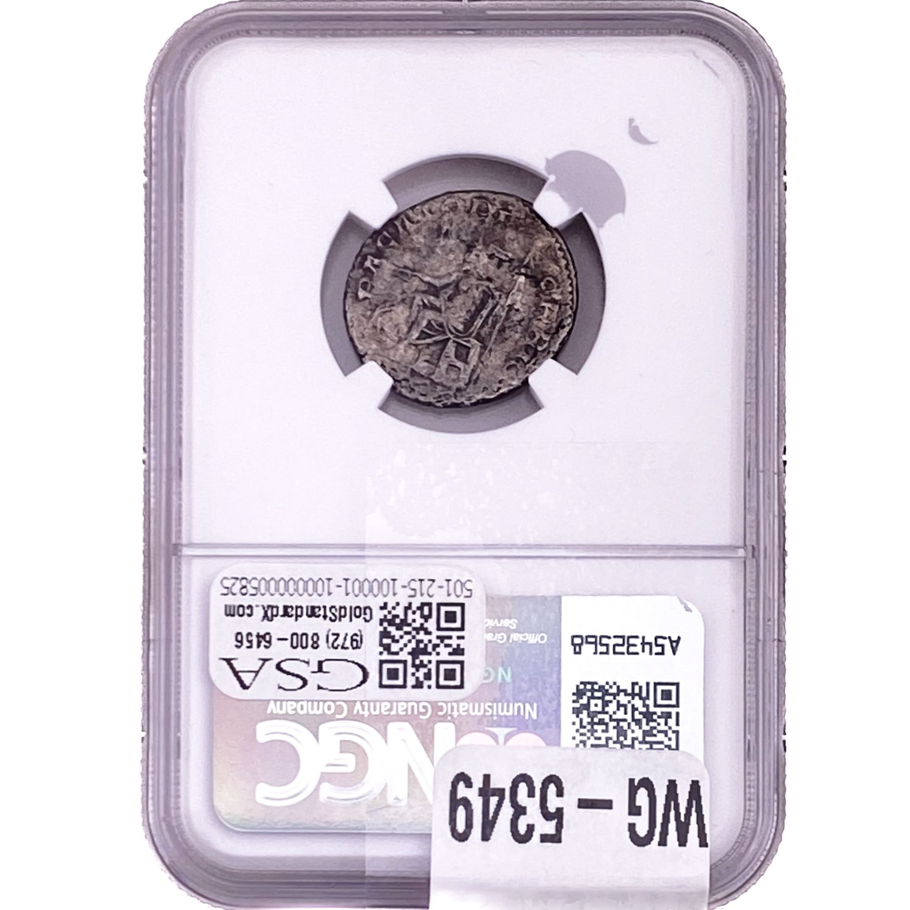 e. Coins sold referencing a third-party grading service are sold “AS IS” without any express or implied warranty, except for a guarantee by GSA that they are genuine. Removal or alteration of the holder, voids all of Bidder’s claims concerning that Product. Certain warranties may be available from the grading services and Bidders are referred to them for further details: Numismatic Guaranty Corporation (NGC), PO Box 4776, Sarasota, FL 34230, www.ngccoin.com/services/writtenguarantee.asp; Professional Coin Grading Services (PCGS), PO Box 9458, Newport Beach, CA 92658, www.pcgs.com/guarantee.html; ANACS, 6555 S. Kenton St., Ste. 303, Englewood, CO 80111; and Independent Coin Grading Co. (ICG), 7901 East Bellview, Ave., Suite 50, Englewood, CO 80111.