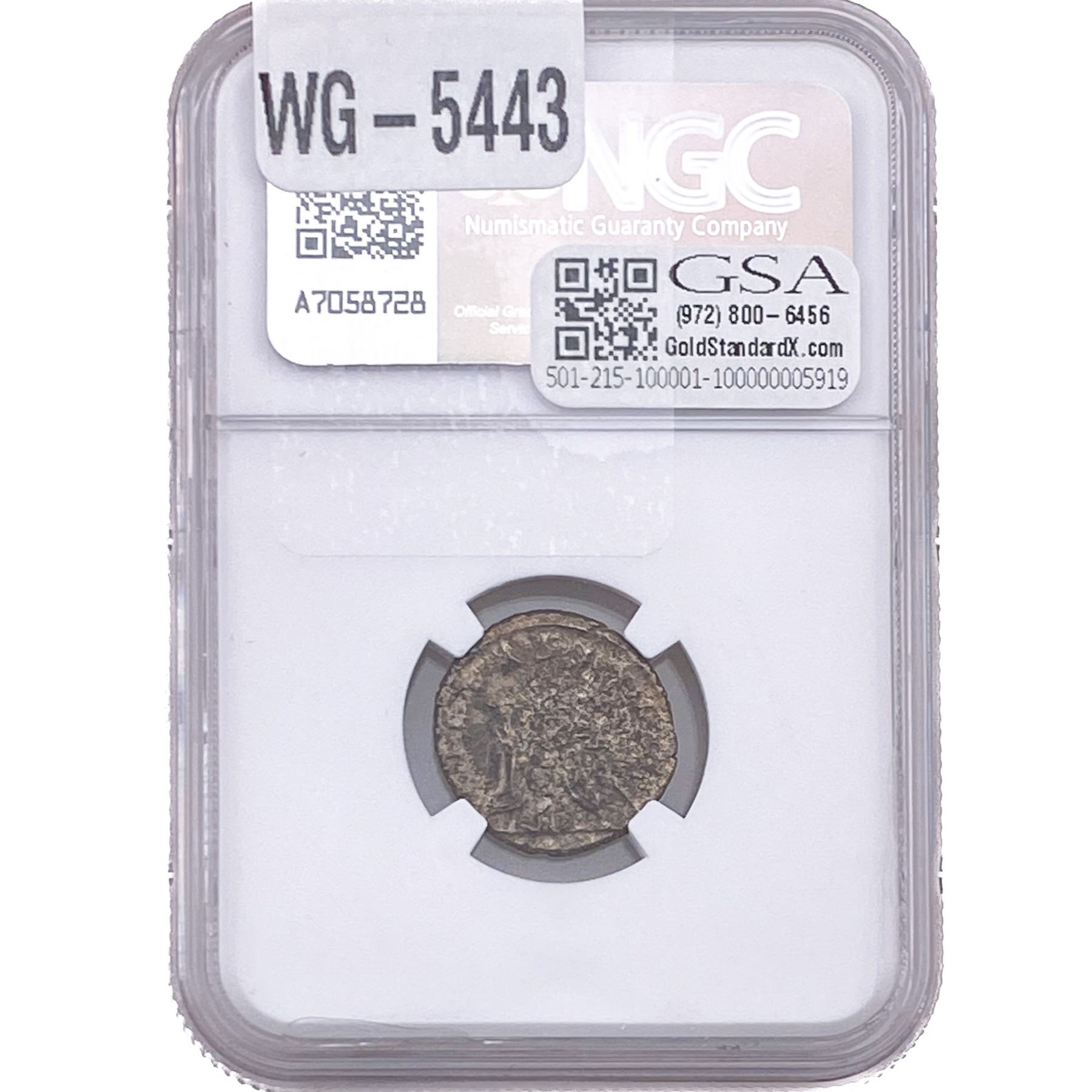 e. Coins sold referencing a third-party grading service are sold “AS IS” without any express or implied warranty, except for a guarantee by GSA that they are genuine. Removal or alteration of the holder, voids all of Bidder’s claims concerning that Product. Certain warranties may be available from the grading services and Bidders are referred to them for further details: Numismatic Guaranty Corporation (NGC), PO Box 4776, Sarasota, FL 34230, www.ngccoin.com/services/writtenguarantee.asp; Professional Coin Grading Services (PCGS), PO Box 9458, Newport Beach, CA 92658, www.pcgs.com/guarantee.html; ANACS, 6555 S. Kenton St., Ste. 303, Englewood, CO 80111; and Independent Coin Grading Co. (ICG), 7901 East Bellview, Ave., Suite 50, Englewood, CO 80111.
