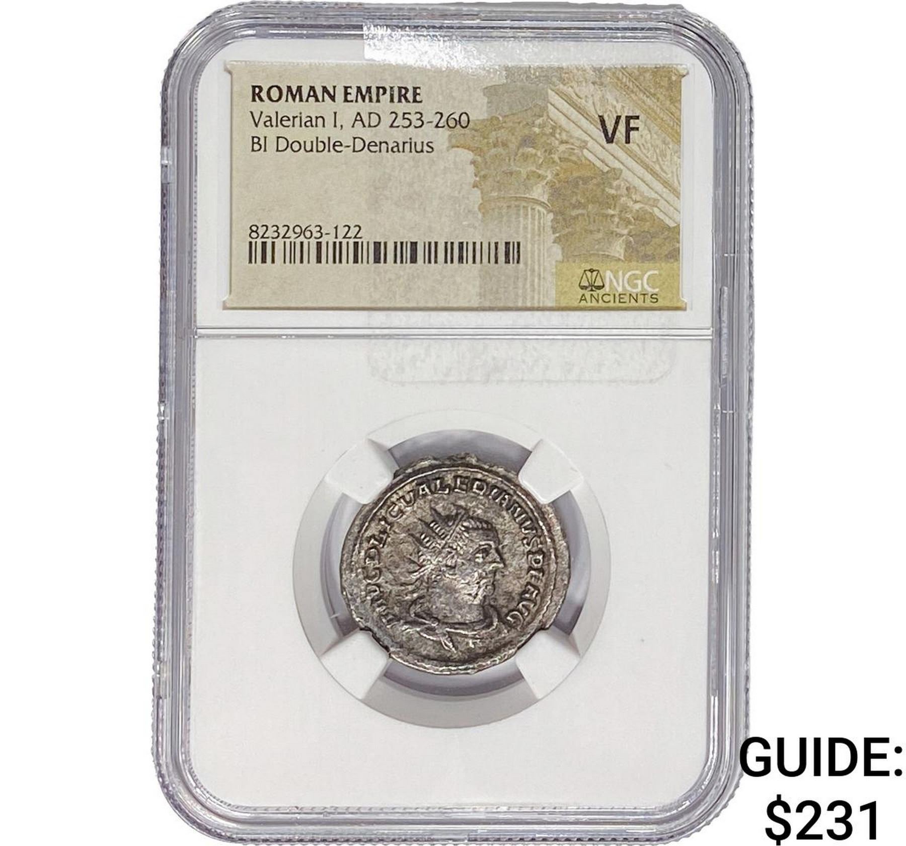 Roman Valerian I, AD 253-260 BI Double-Denarius NGC VF