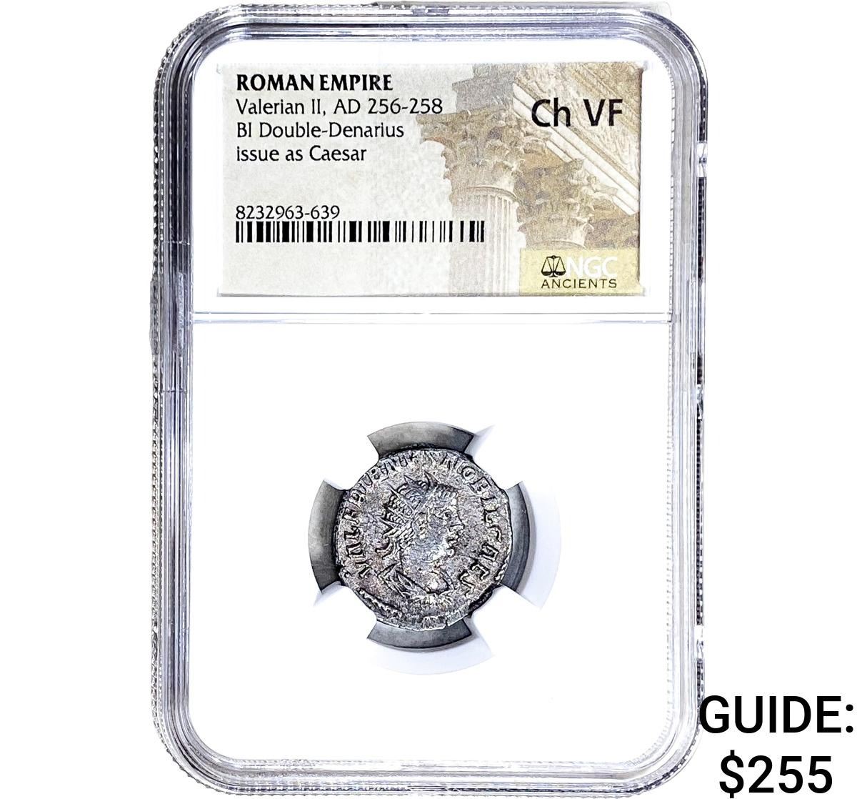Roman Valerian II, AD 256-258 BI Dbl-Denarius NGC Ch VF