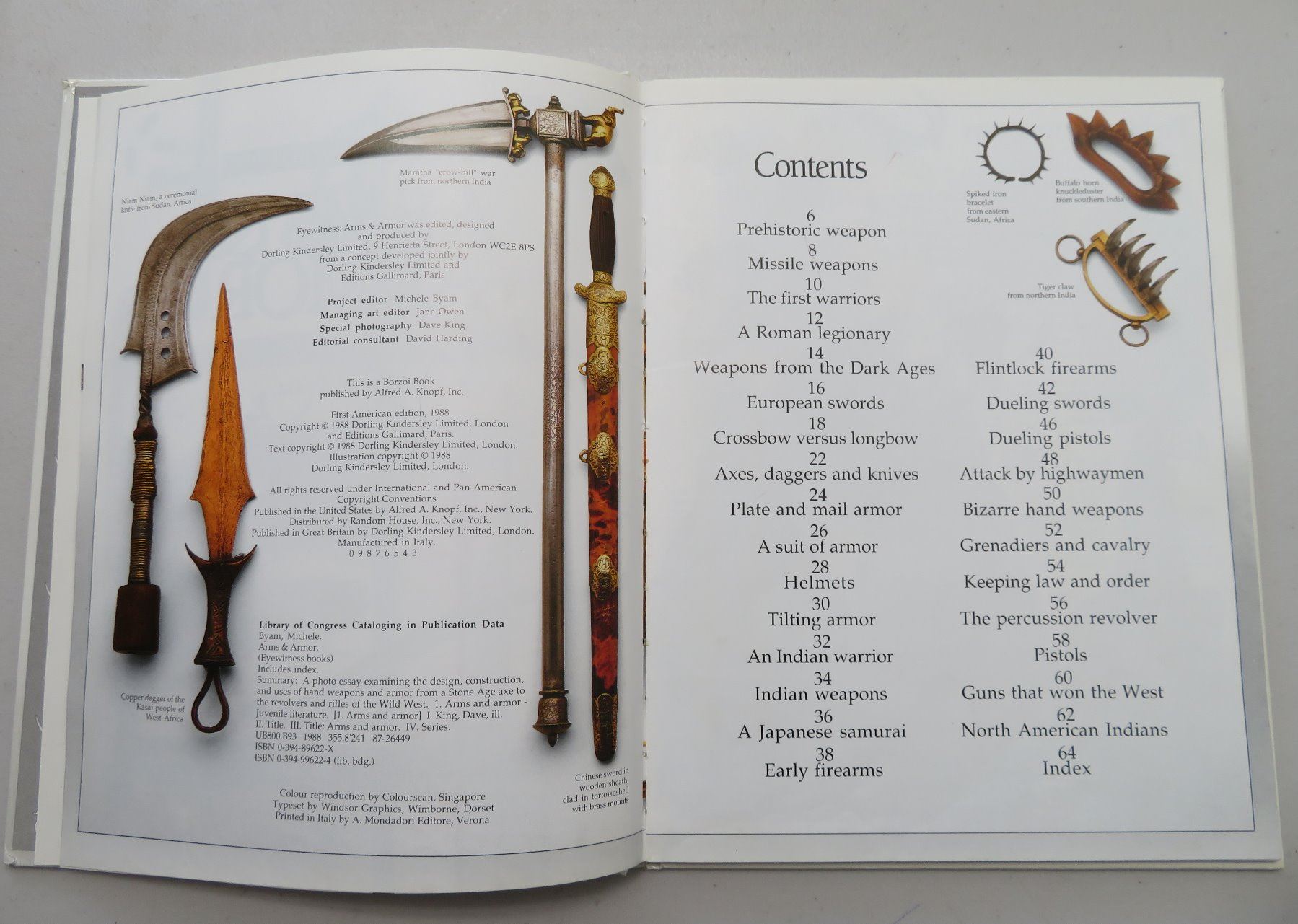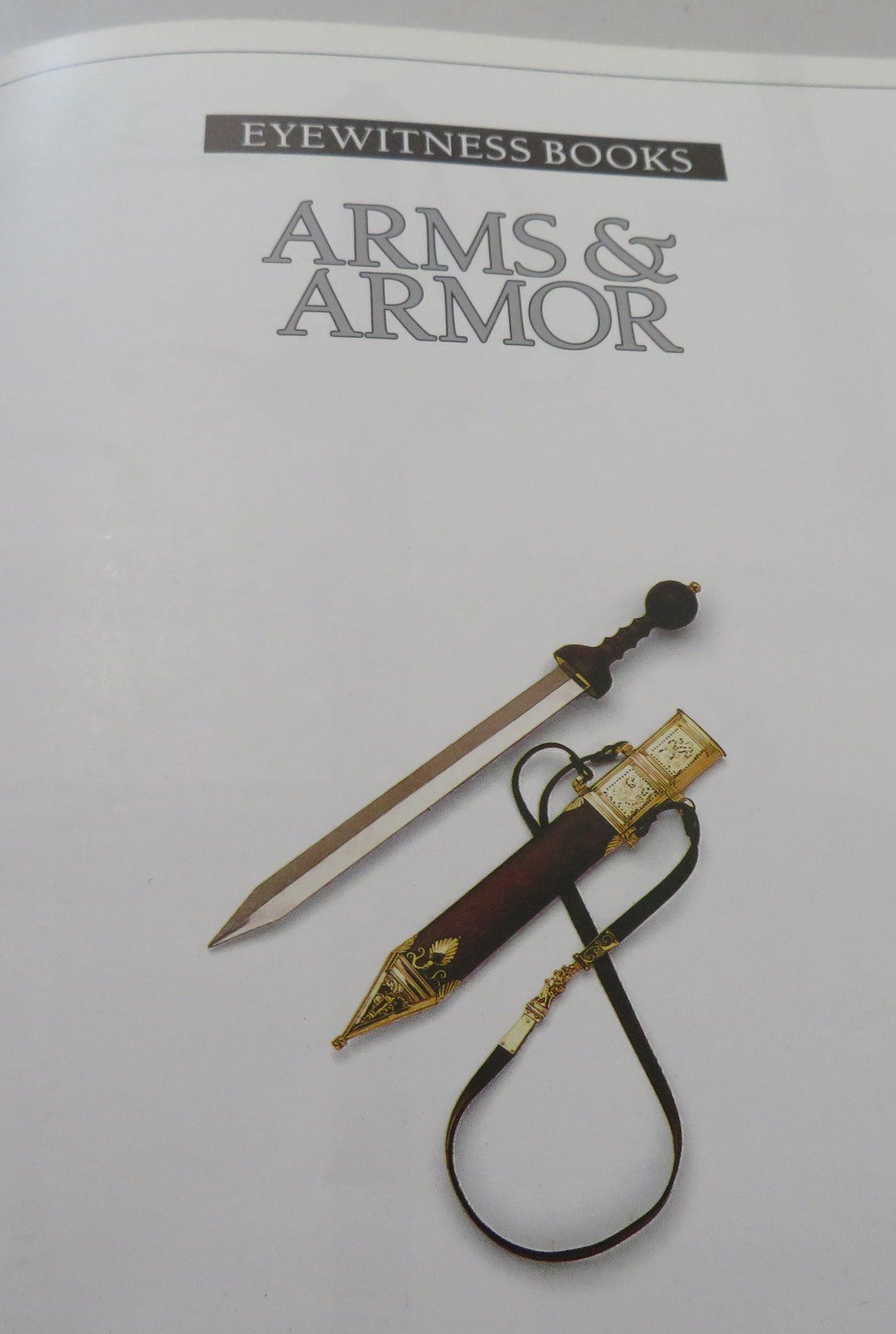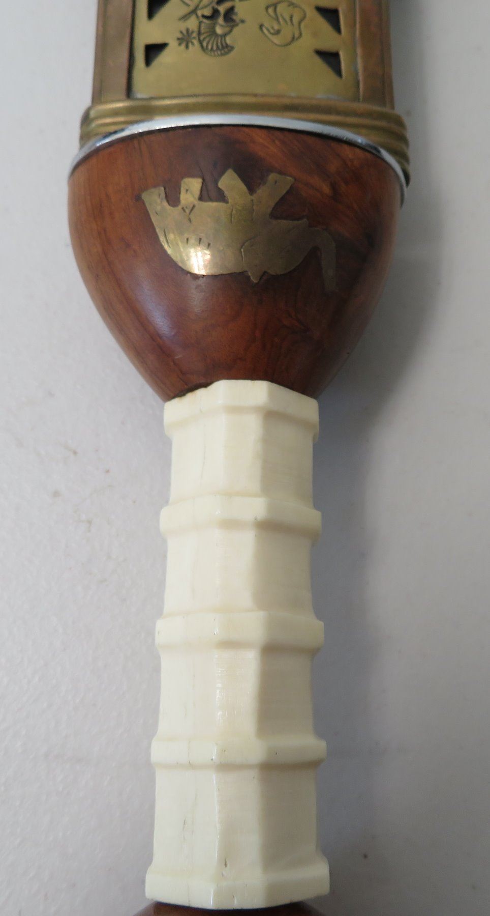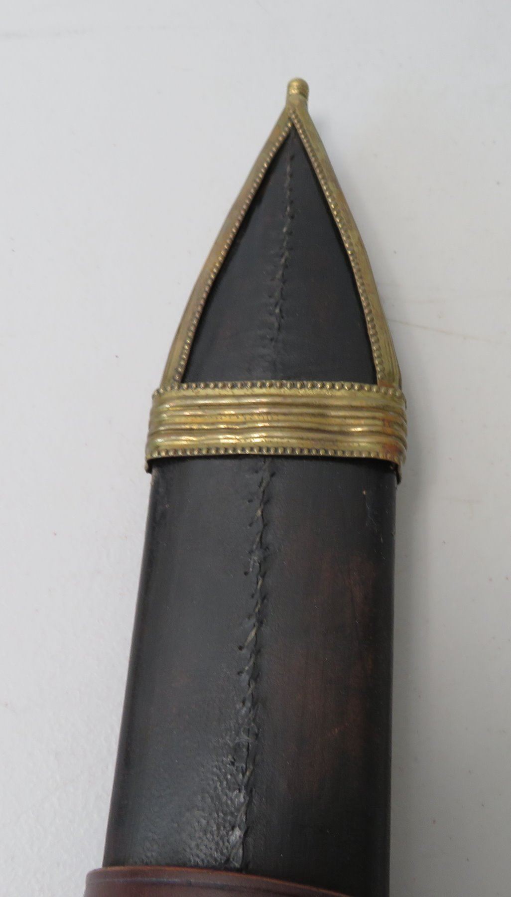 Roman-style Sword, modern item. Made of leather, wood, bone, brass and steel, the item measures 30" x 3". Middle East. Also includes book. Condition: Good, see images. Shipping: $55.00 w/insurance and signature, due to length and weight.