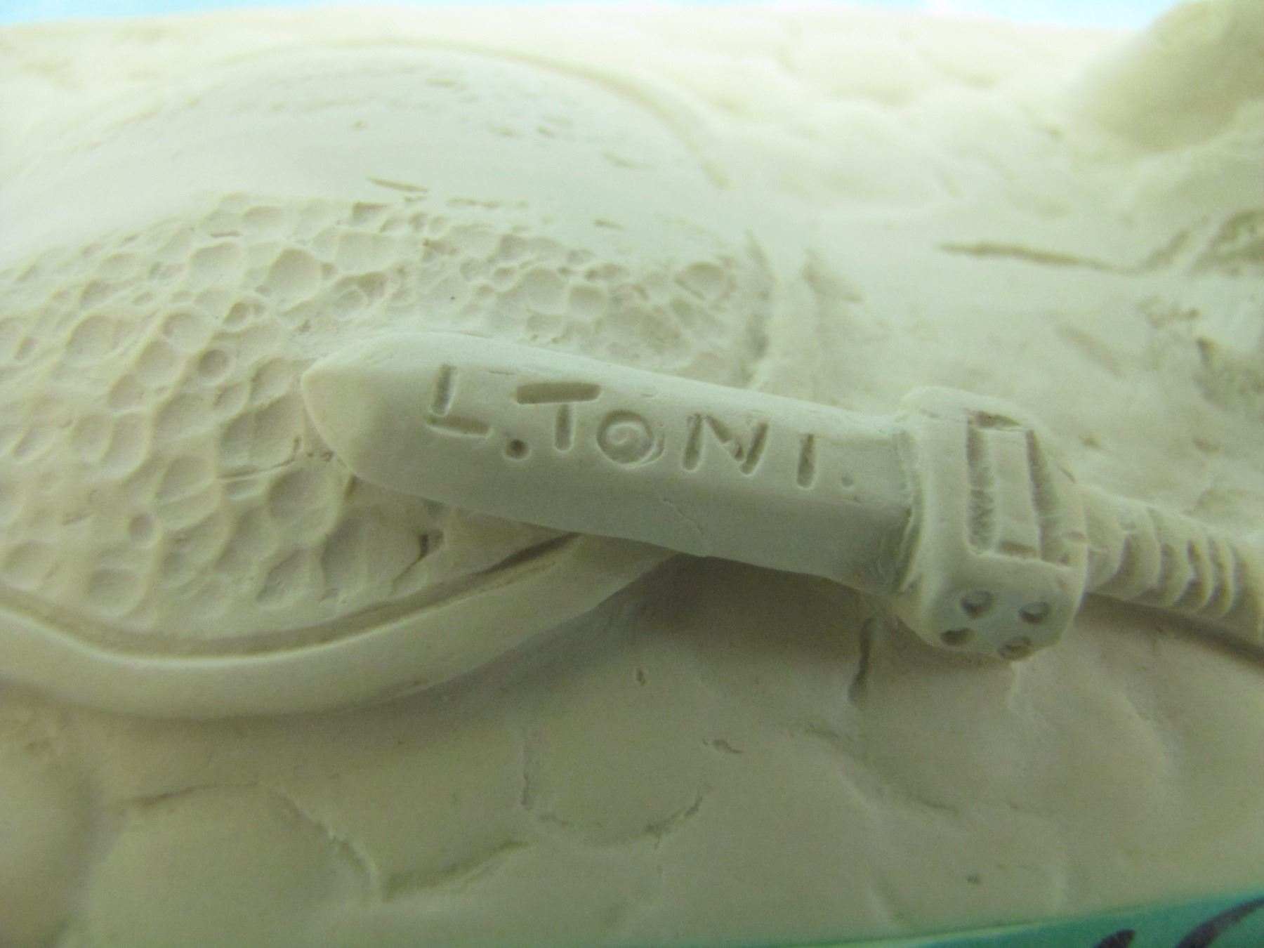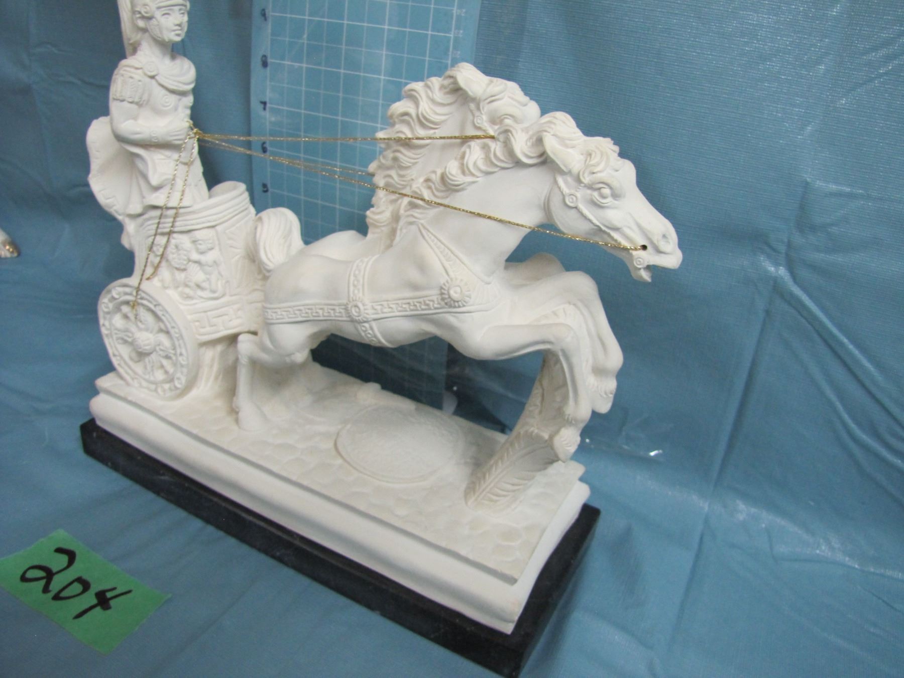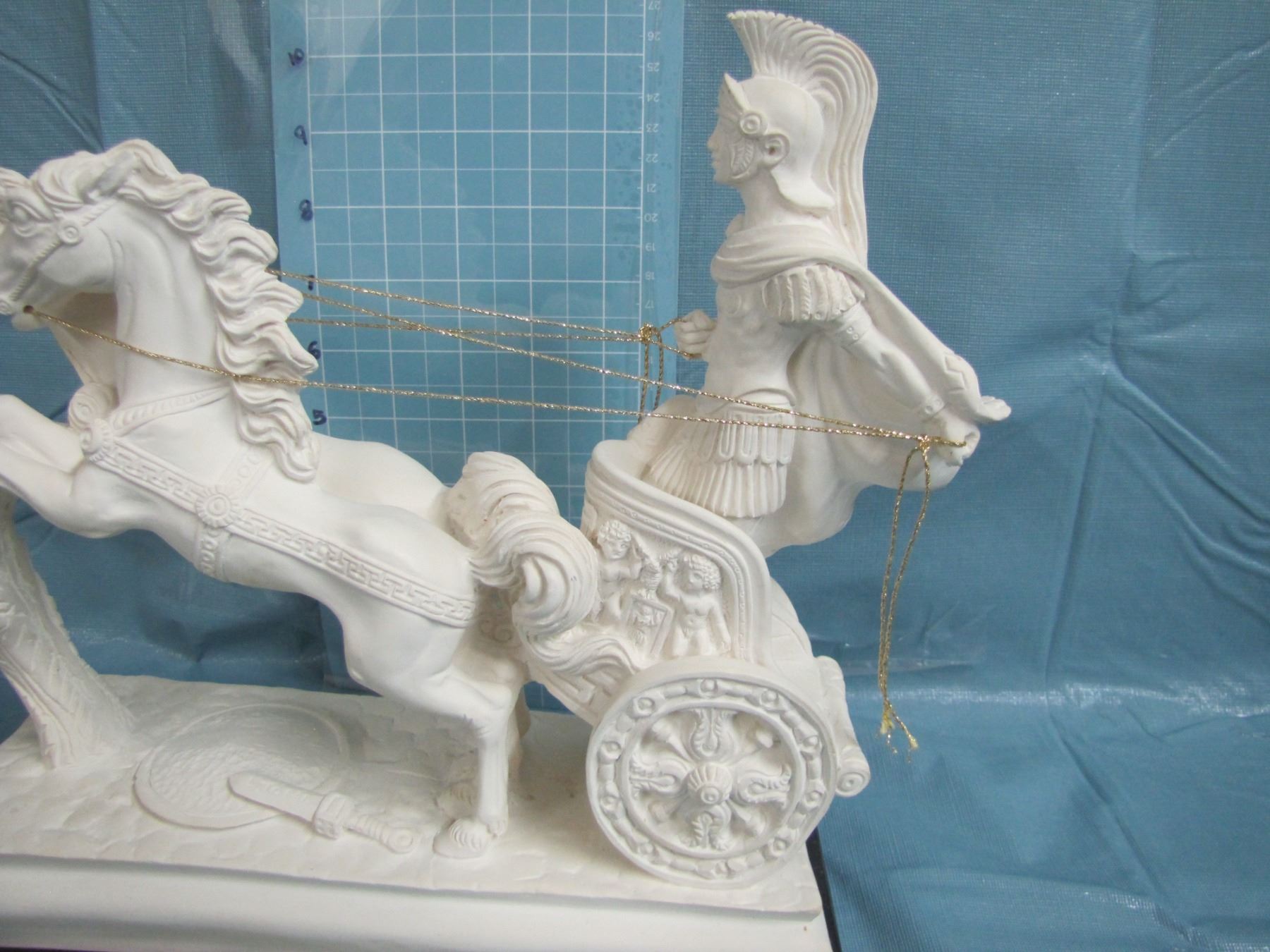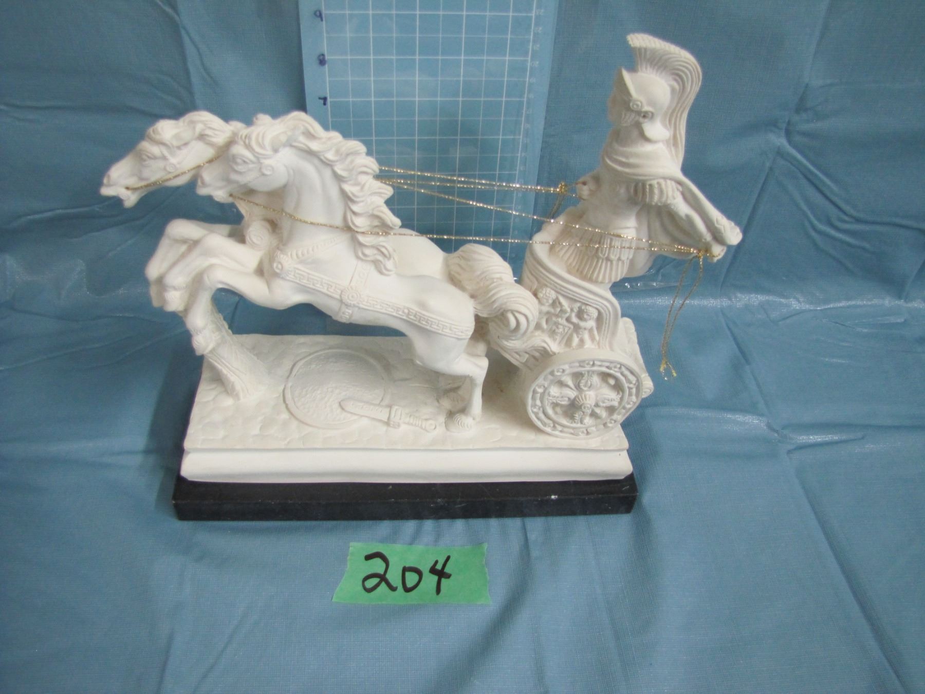 Roman style figurine Gladiator in Chariot with horses marble base -- Marked " L. Toni "