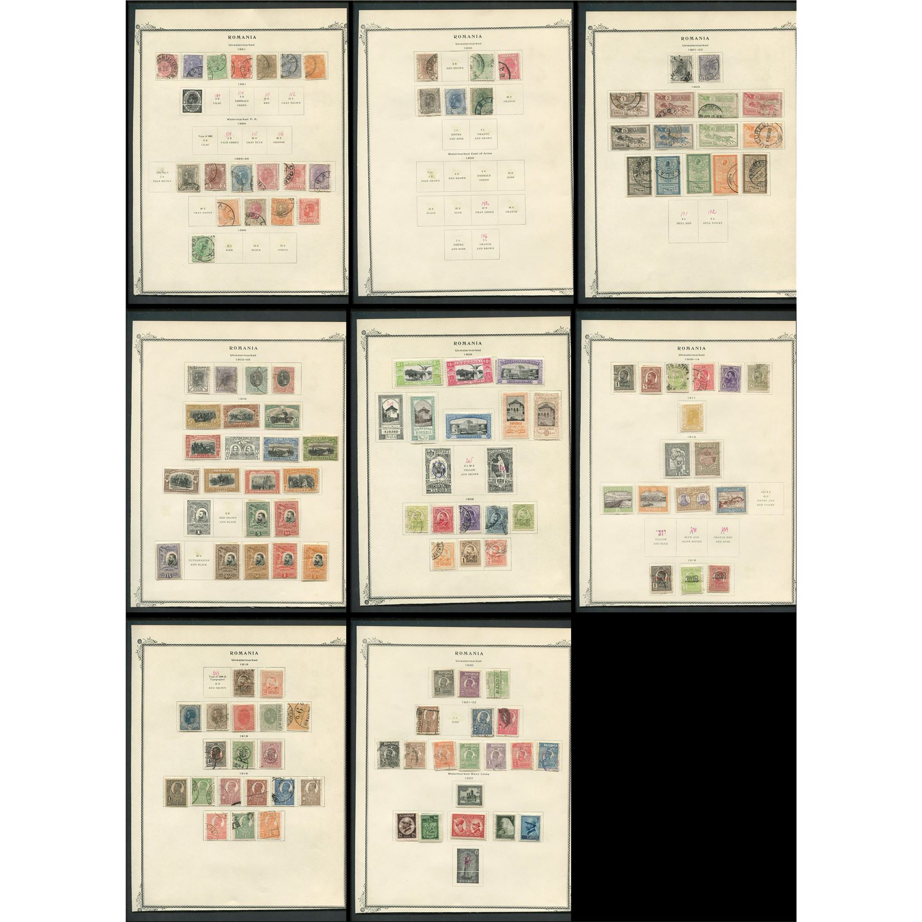Romania 1891 to 1922 stamp collection. This collection contains 122 stamps.