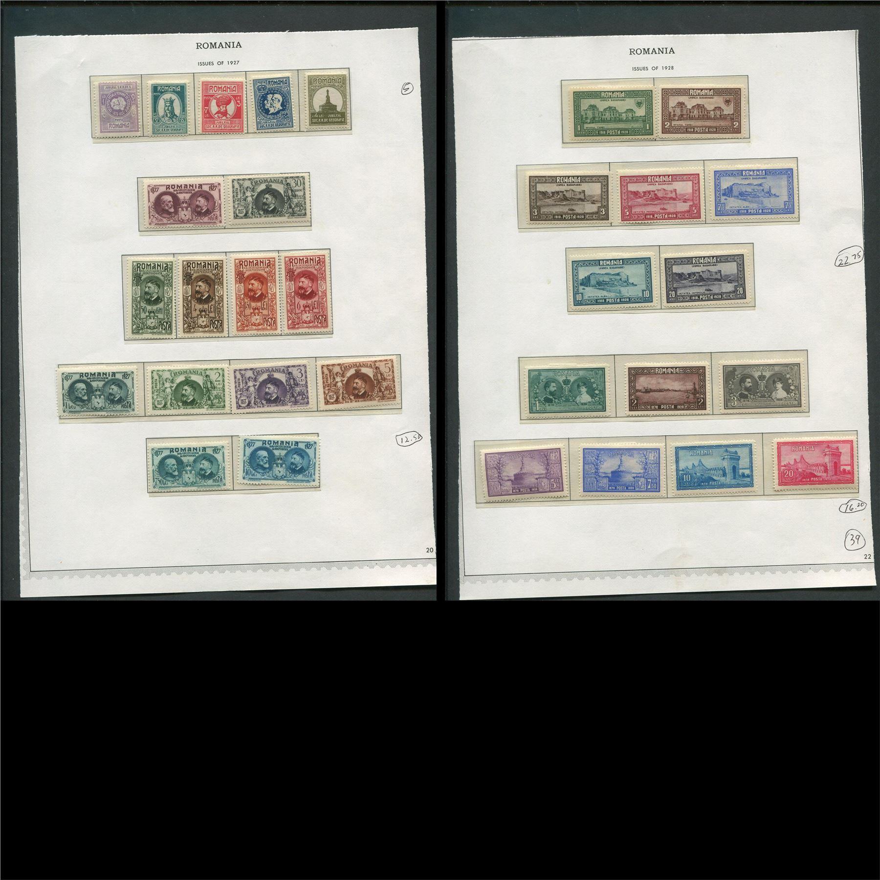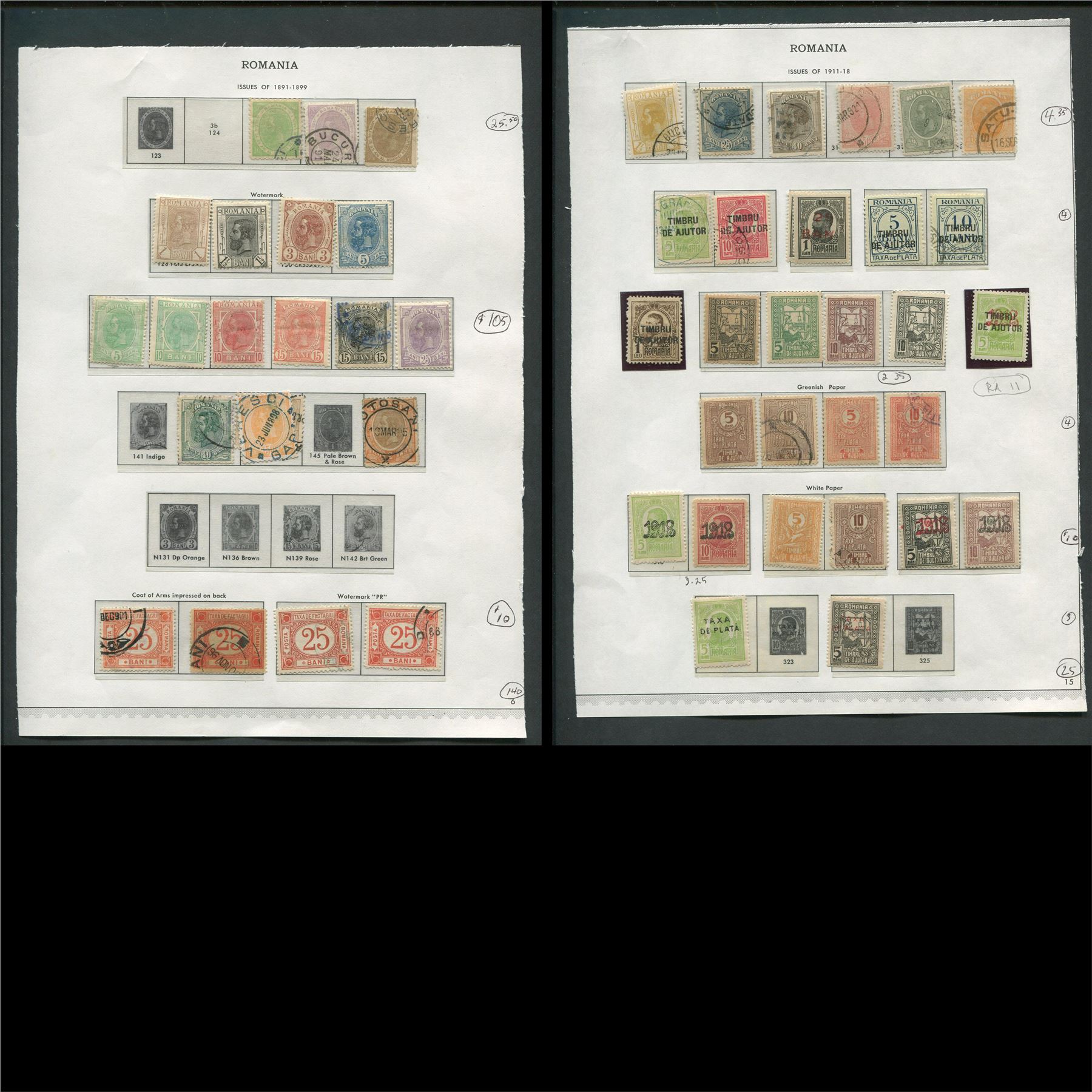 Romania 1891 to 1940 stamp collection. This collection contains 280 stamps. Total S/C value = $500.