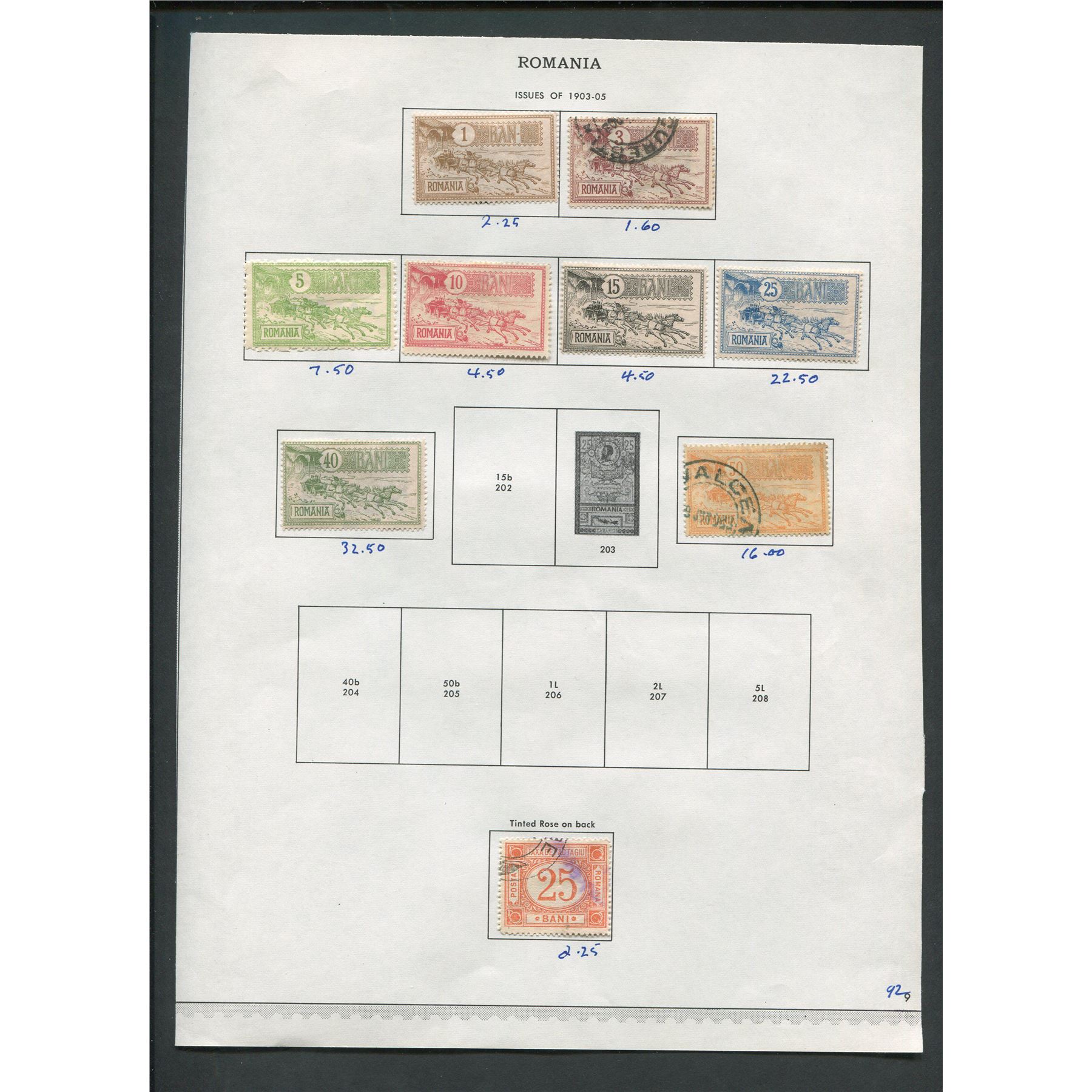 Romania 1903 to 1913 stamp collection. This collection contains both mint and cancelled stamps. Total S/C value = $600.