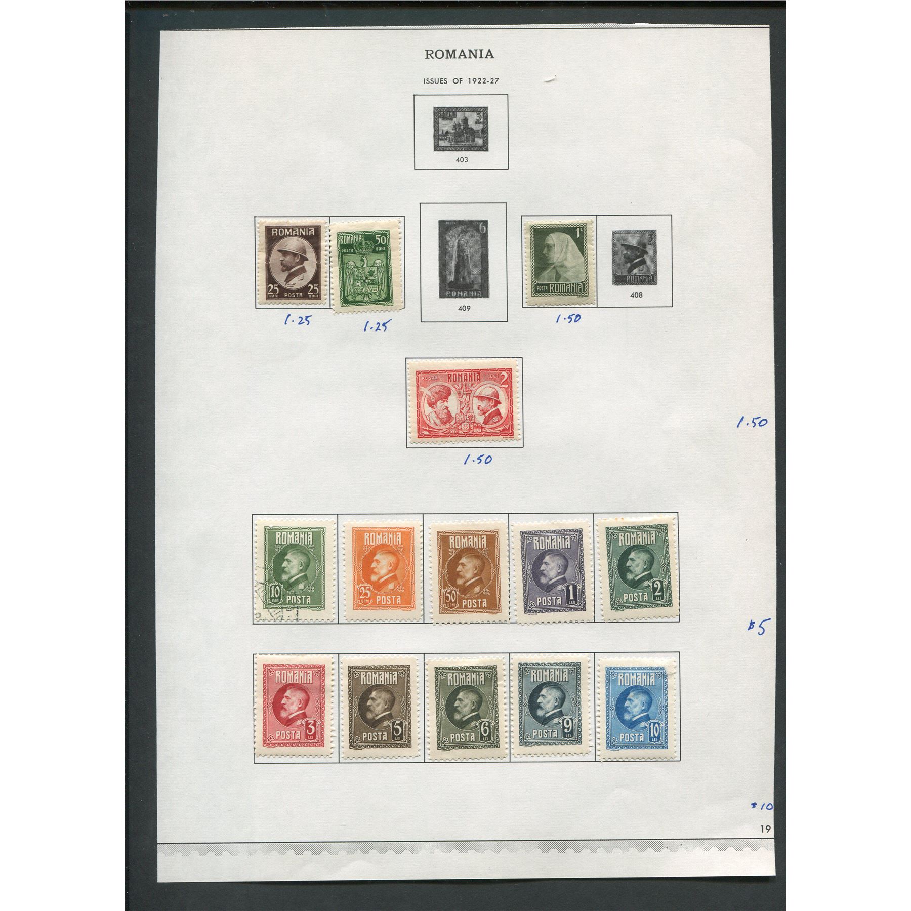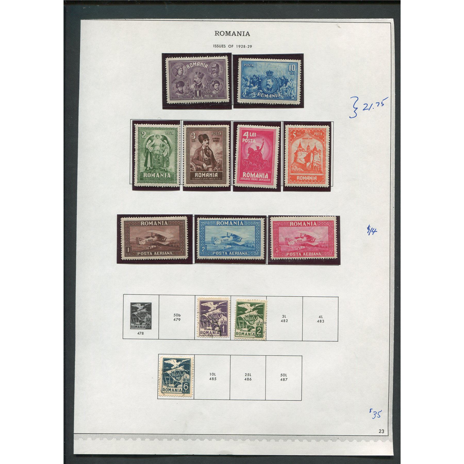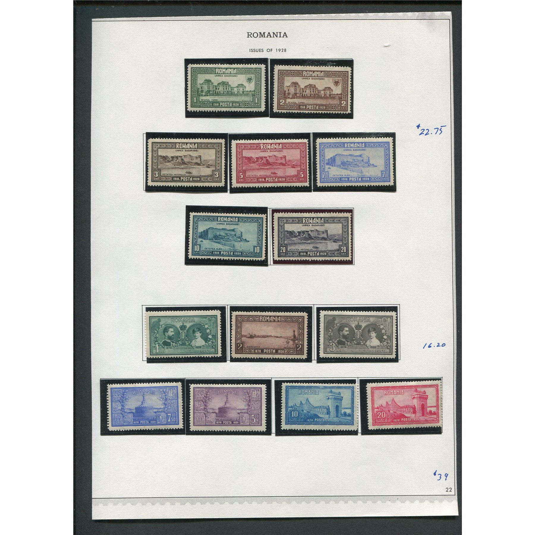 Romania 1922 to 1946 stamp and souvenir sheet collection. This collection contains 90 stamps. Total S/C value = $420.