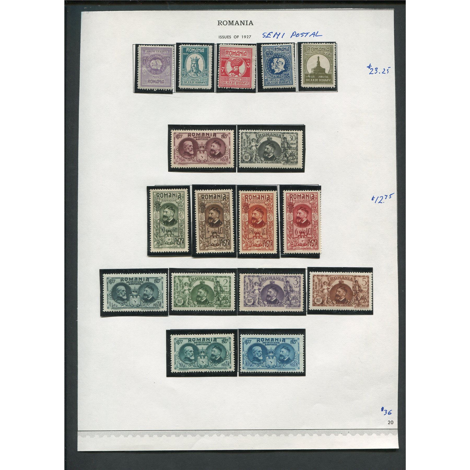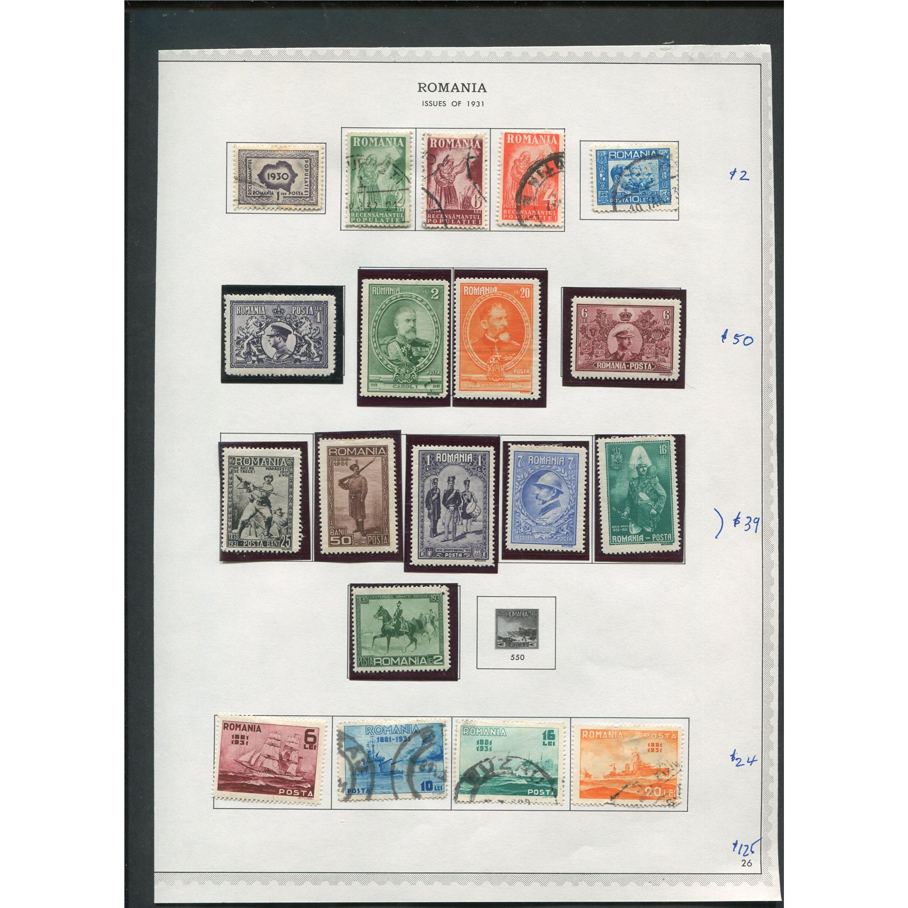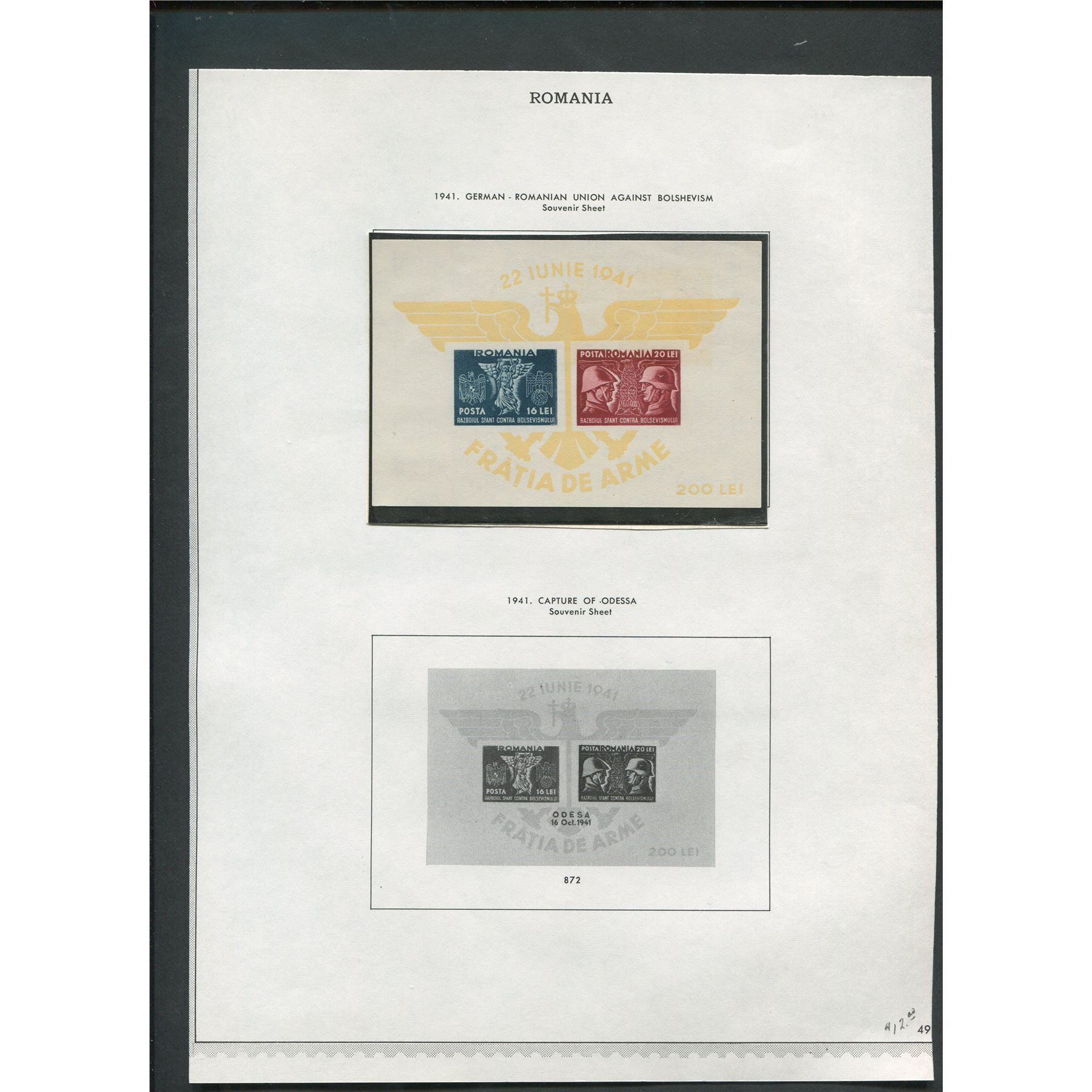 Romania 1922 to 1946 stamp and souvenir sheet collection. This collection contains 90 stamps. Total S/C value = $420.