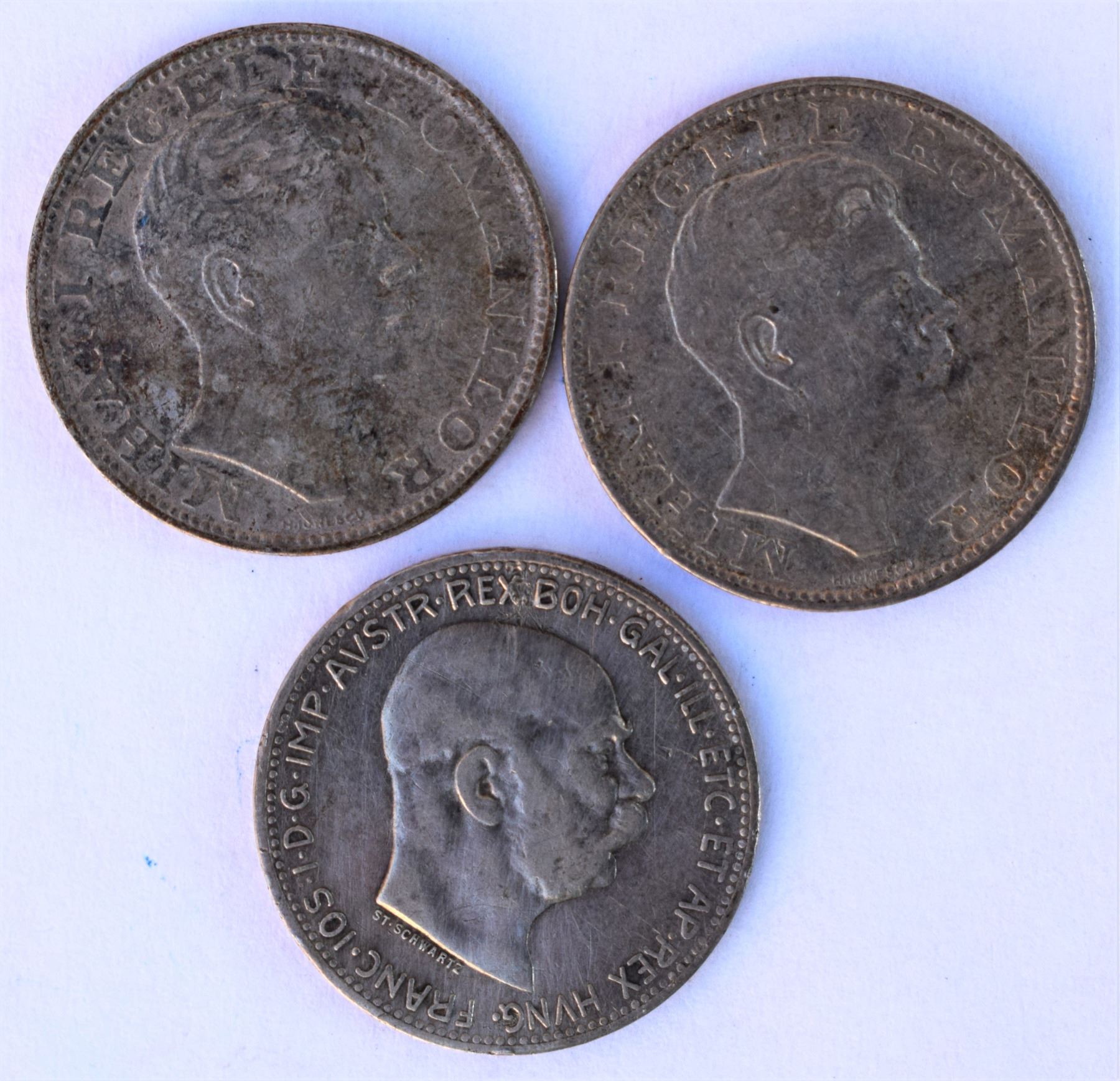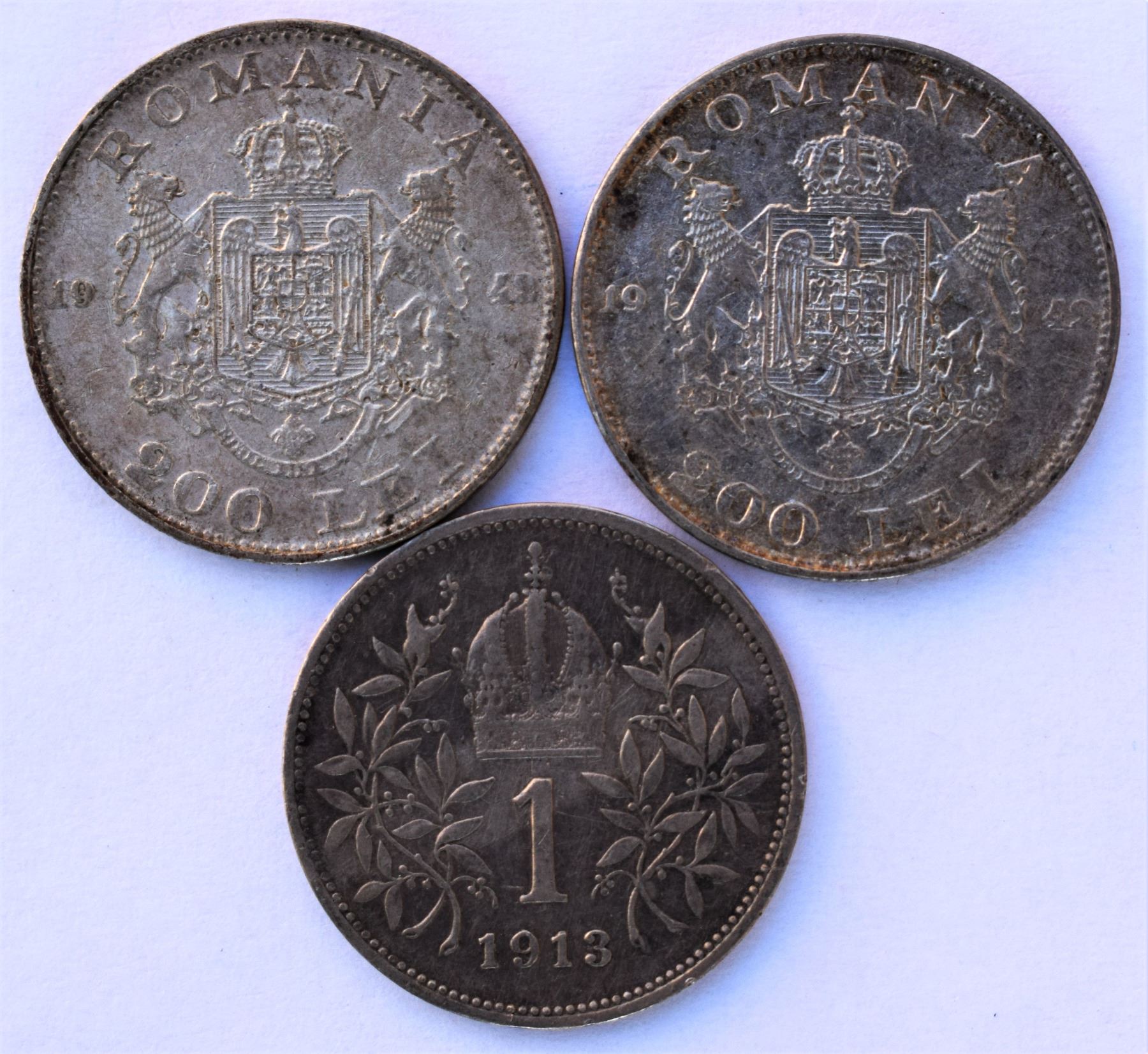 Romania (2) and Austria coin Trio, 200 Lei x 2 1942 and 1 Corona 1913 All Silver XF Average a 200 Lei Has a DD, See Pictures