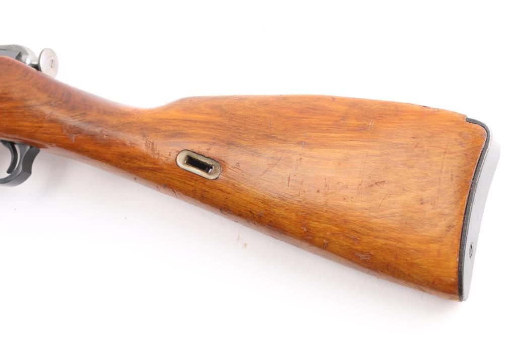 GOOD: Some minor replacement parts; metal smoothly rusted or lightly pitted in places, cleaned or re-blued; principal letters, numerals and design on metal legible; wood refinished, scratched bruised or minor cracks repaired; in good working order.