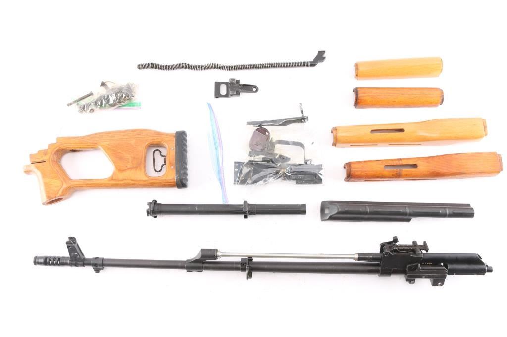Populated barrel in excellent condition, 7.62x54r. Wood furniture is in very good condition. Has receiver section with bolt hold open feature. Some matching parts. May need some small parts. Has extra set of handguards, rear stock has a crack on the top.