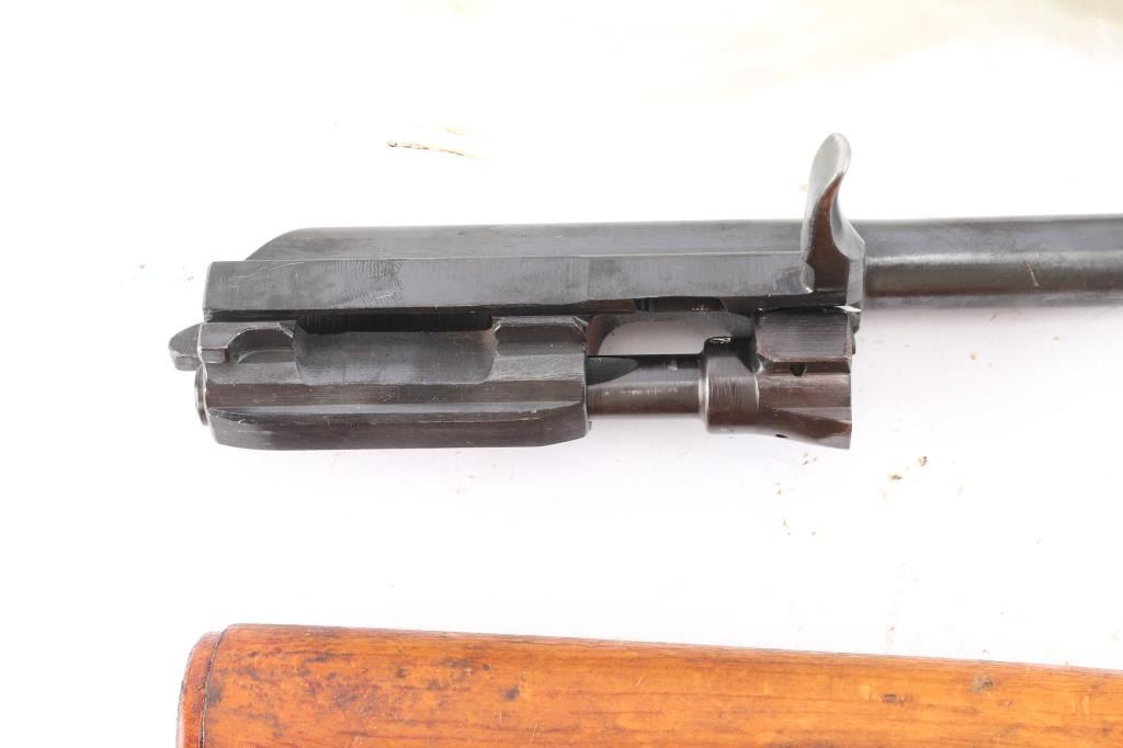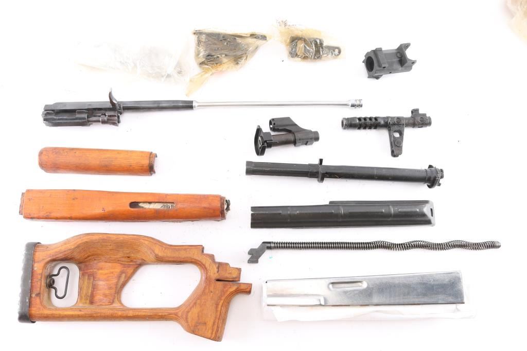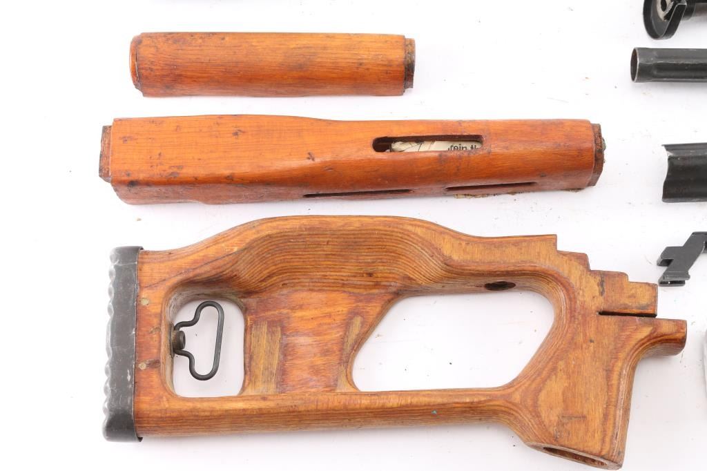 7.62x54r. 80% receiver with blueprints, rivets and receiver parts, wood furniture is in good condition, metal parts show signs of use. Minus barrel and may need some small parts.