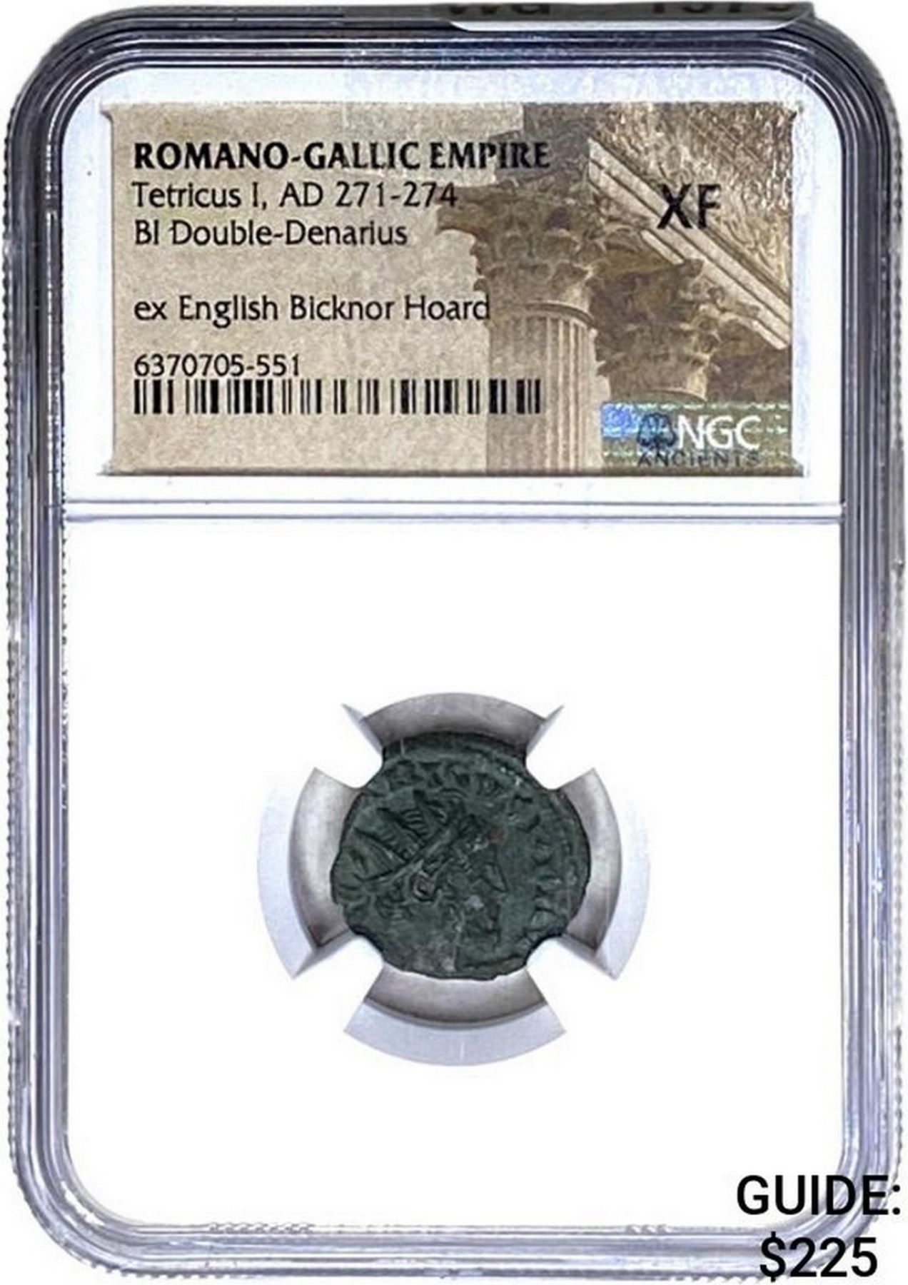 Romano Gallic Tetricus I, AD 271-274 BI DBL Denarius NGC XF