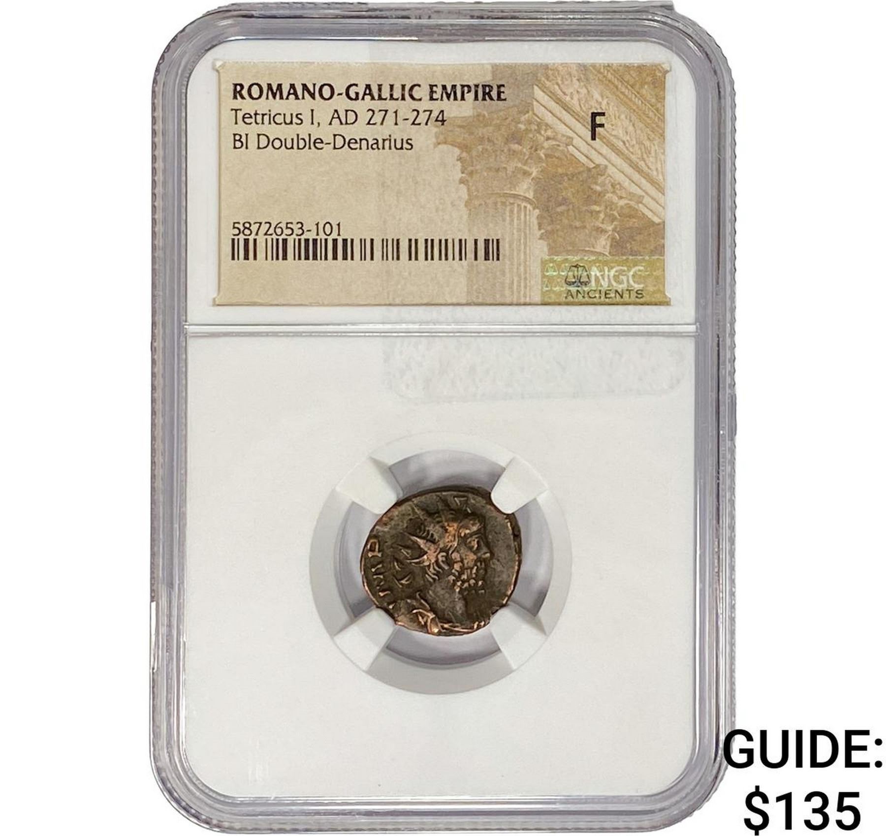 Romano-Gallic TetricusI, AD271-274 BIDbl-Denarius NGC F