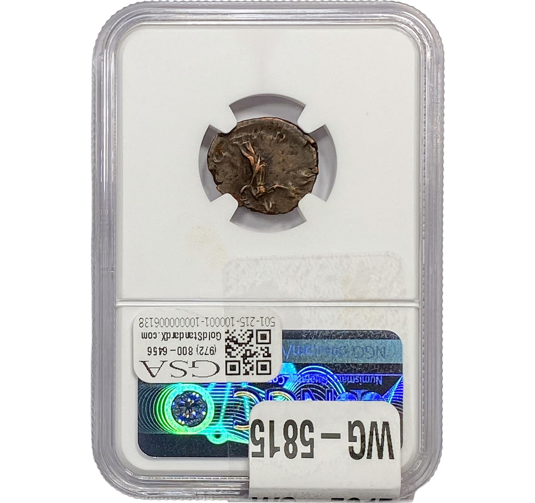 e. Coins sold referencing a third-party grading service are sold “AS IS” without any express or implied warranty, except for a guarantee by GSA that they are genuine. Removal or alteration of the holder, voids all of Bidder’s claims concerning that Product. Certain warranties may be available from the grading services and Bidders are referred to them for further details: Numismatic Guaranty Corporation (NGC), PO Box 4776, Sarasota, FL 34230, www.ngccoin.com/services/writtenguarantee.asp; Professional Coin Grading Services (PCGS), PO Box 9458, Newport Beach, CA 92658, www.pcgs.com/guarantee.html; ANACS, 6555 S. Kenton St., Ste. 303, Englewood, CO 80111; and Independent Coin Grading Co. (ICG), 7901 East Bellview, Ave., Suite 50, Englewood, CO 80111.