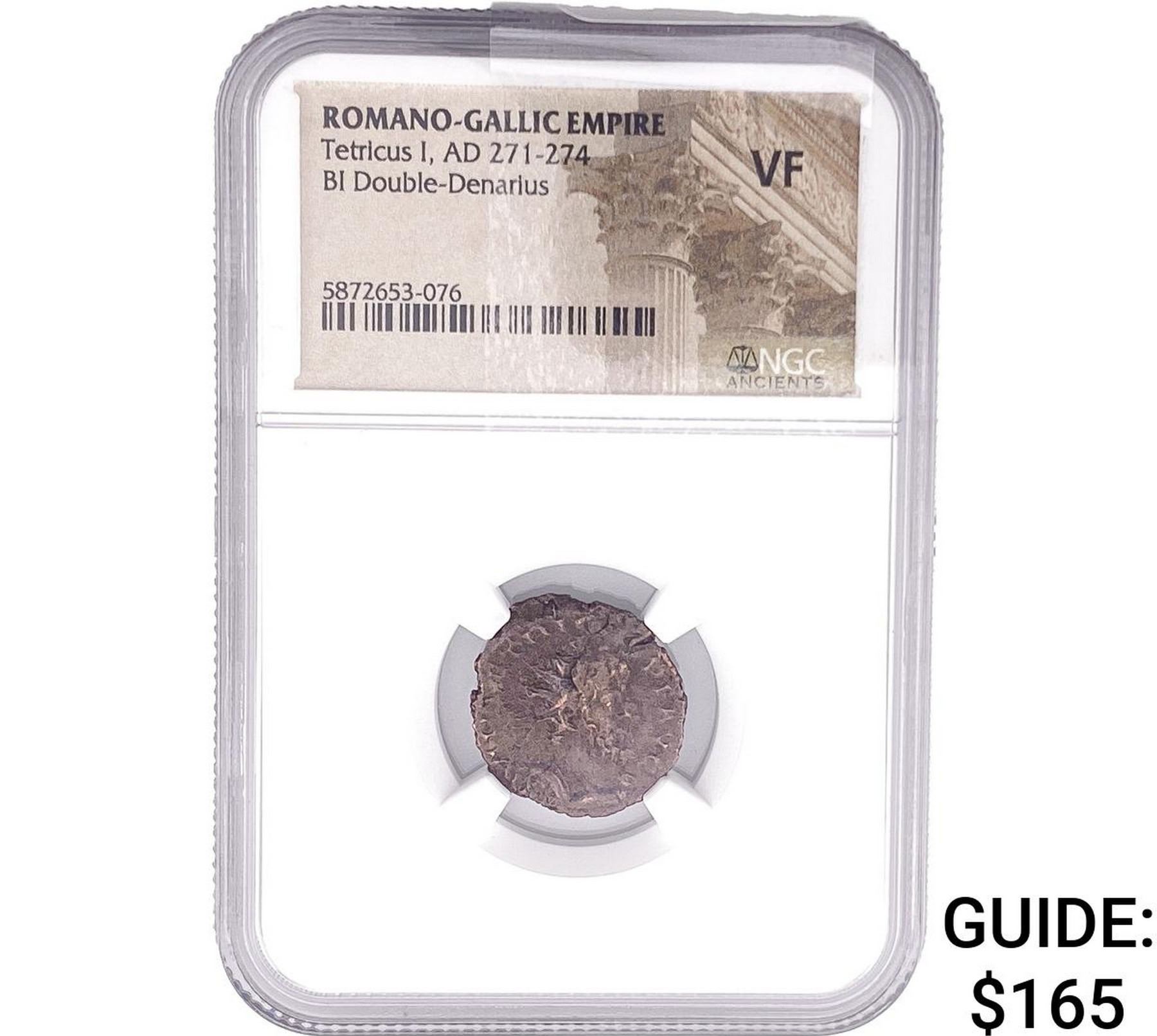Romano-Gallic TetricusI, AD271-274 BIDbl-Denarius NGC VF