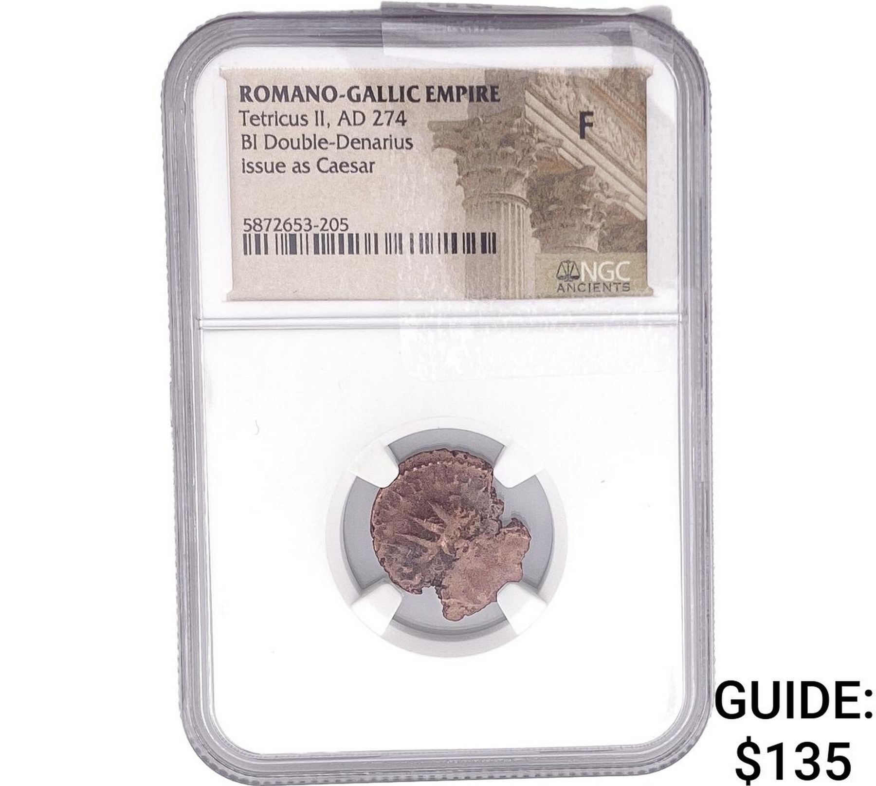 Romano-Gallic TetricusII,AD274 BI Double-Denarius NGC F