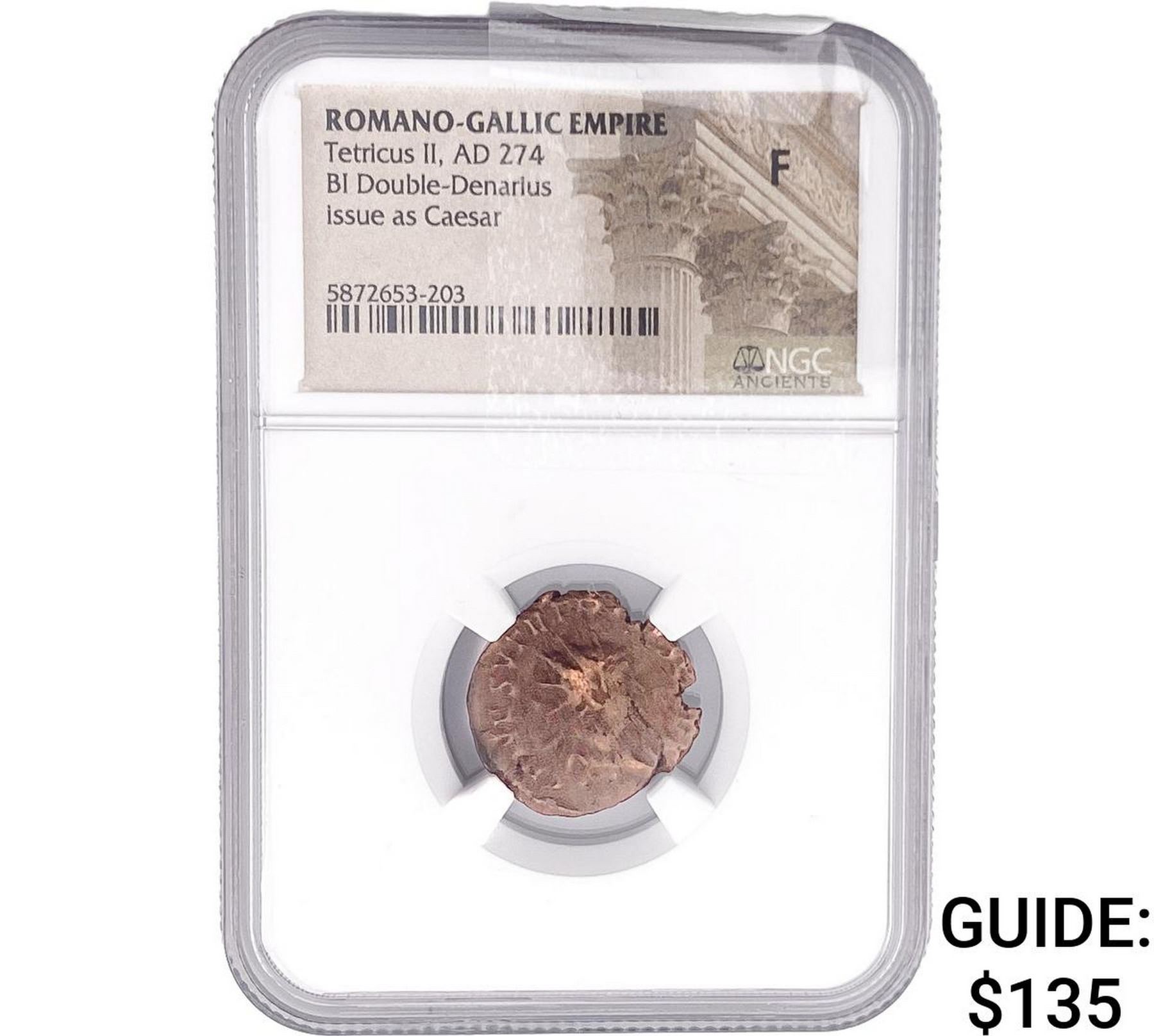 Romano-Gallic TetricusII,AD274 BI Double-Denarius NGC F