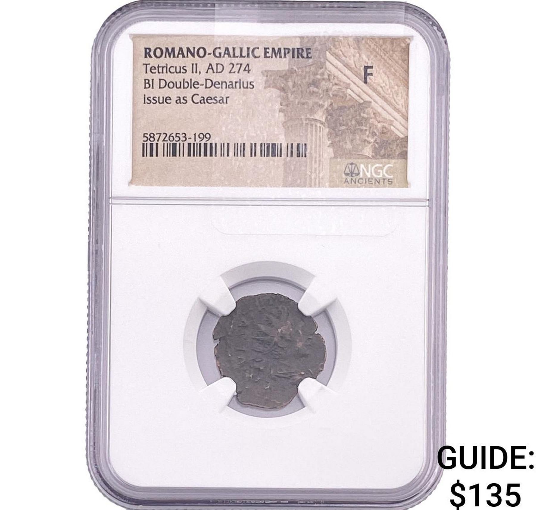 Romano-Gallic TetricusII,AD274 BI Double-Denarius NGC F