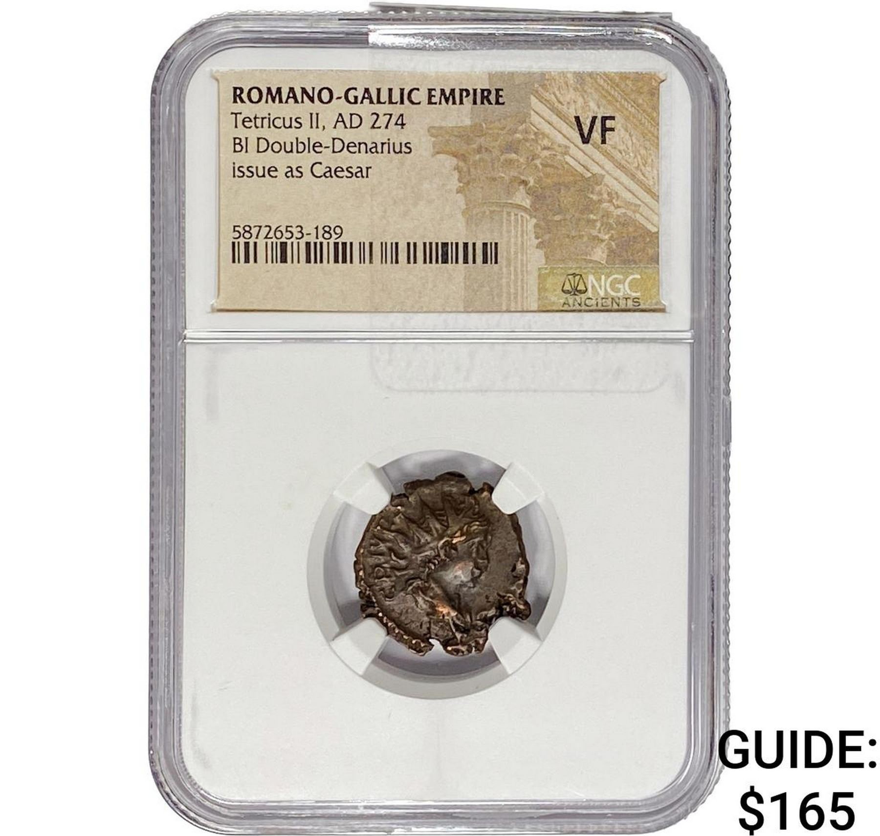 Romano-Gallic TetricusII,AD274 BI Double-Denarius NGC VF