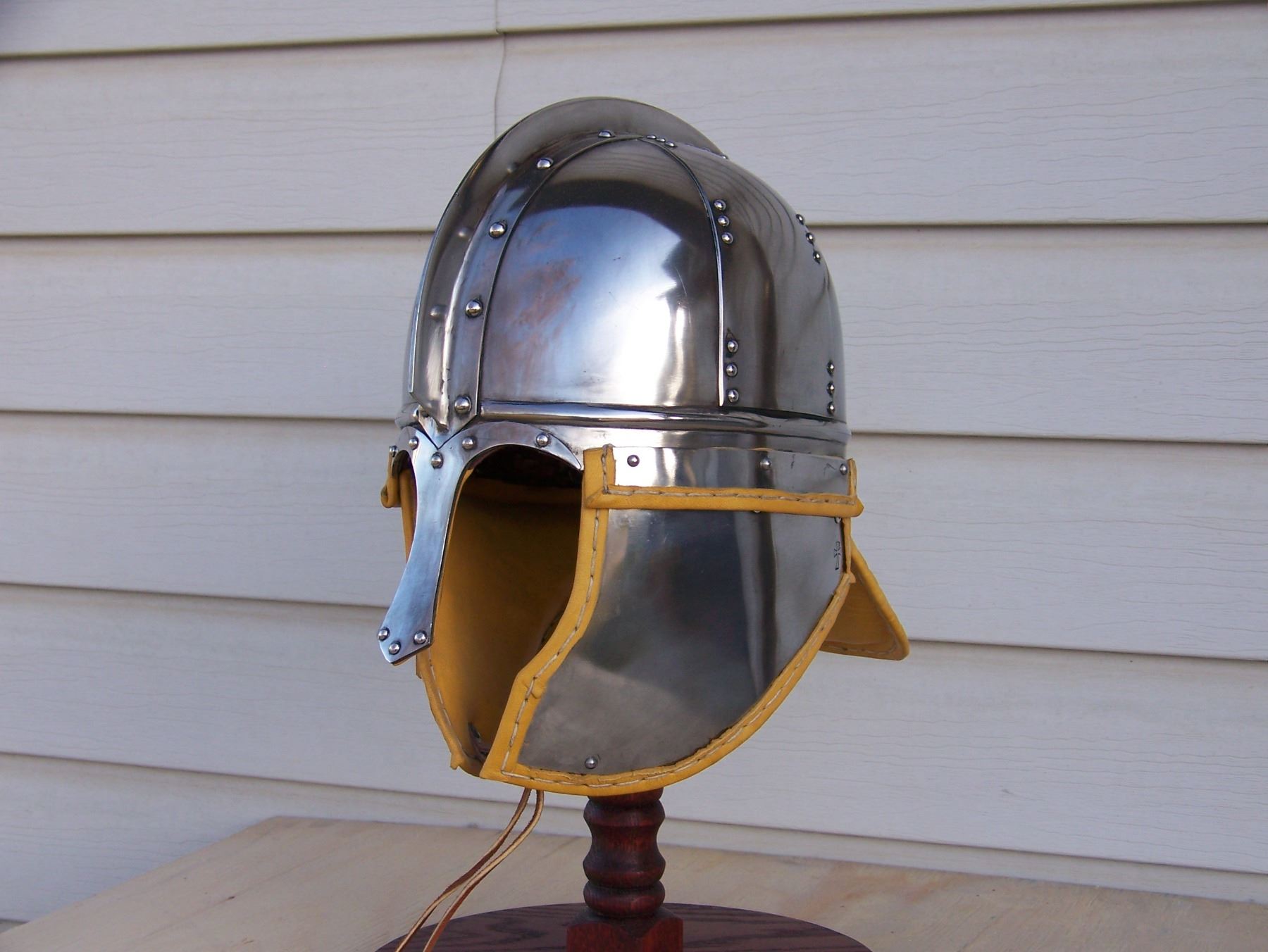 The helmet is a faithful copy based on an excavated example from Berkasovo, Yugoslavia. Constructed by myself in 1996.