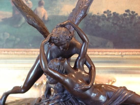 Cupid and Psyche Bronze Sculpture, After Barye, 12 1/2"H x 12 1/2"W x8"D 24 lbs. This bronze sculpture was produced using the "Lost Wax" casting method. The"Lost Wax" Cast method is the most precise metal casting technique in existence, ensuring exquisite detail of the original host model which is usually sculpted in clay or wax. This "Lost Wax" casting method is an extremely labor intensive and expensive process, but the end results produce a Heirloom Quality Masterpiece! Antoine-louis Barye (1796 - 1875) Originally trained as a goldsmith, Antoine-Louis Barye served in Napoleon's army before studying sculpture and painting. He entered the Ecole des Beaux-Arts in 1818 and adapted the romantic-style subject matter of violent and majestic animals. After his crocodile-like sculpture entitled Tiger Devouring a Gavail, won a medal at the Salon of 1831, Barye became a successful and independent sculptor and painter. His animal sculptures competed at the Salon alongside the more traditional and revered human figures. In 1845, Barye began a foundry that produced smaller and more affordable bronze statues. He was appointed the keeper of plaster casts at the Louvre and professor of zoological drawing at the Musee National d'Histoire Naturelle, both in Paris. Elected to the Academie in 1868, Barye inspired a later generation of animal sculptors who called themselves the animaliers.