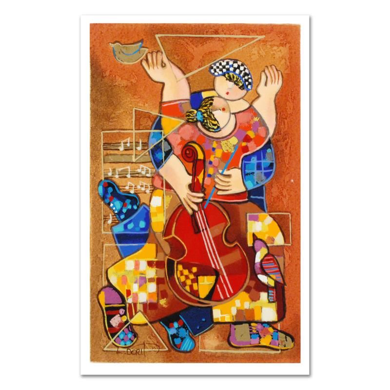 "Romantic Dancing" is a limited edition serigraph on paper by Dorit Levi, numbered and hand signed by the artist. Includes Certificate of Authenticity. Measures approx. 8.5" x 12.5" (border), 8" x 12" (image).