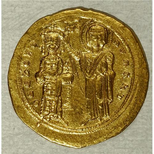 <B>Romanus III.</B></I> 1028-1034. AV histamenon nomisma (25 mm, 4.40 g). Constantinople. Christ enthroned facing, holding Gospels / Mary standing facing, crowning Romanus, standing facing and holding globus cruciger. DOC III 1; SB 1819. <B>Good VF.</B></I><BR><BR><b>Shipping:</b> Coin/Currency (<a target="_blank" href="http://www.heritageauctions.com/common/shipping.php">view shipping information</a>)
