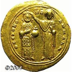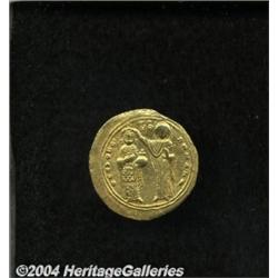 <B>Romanus III.</B></I> 1028-1034. AV histamenon nomisma (24 mm, 4.34 g). Constantinople. Christ enthroned facing, raising right hand in benediction and holding Gospels / Romanus standing facing on left, holding globus cruciger, being crowned by the Virgin standing facing on right. DOC 1b; SB 1819. Near XF. <BR><I>From the Geneva Collection.</B></I> <BR><BR><B>Important notice:</B> Heritage usually auctions material at the rate of 200-250 lots per hour. On some occasions eBay Live bid software or the Internet may not be able to keep up with the pace of the auction. We recommend placing a realistic absentee bid now as insurance to avoid disappointment. Occasionally the auctioneer may eliminate or reject an eBay Live bid, and the auctioneer may also reopen a lot after the close of the eBay live bidding (usually because we missed an audience bid), and may reject your bid even if it shows you as the winning bidder. By bidding via eBay Live, you agree that Heritage may award the lot to another bidder at its sole discretion under the circumstances described above or any other reasonable circumstances. Since eBay bids are not shown to us until we open the lot on the floor, we treat those bids just like floor bids. In most cases the floor responds before the eBay bid is presented to us, due to Internet lag time, so for consistency we have made it a policy that floor bids are always considered first over tie eBay live bids. Also please note that all Heritage lots purchased through eBay Live carry a 20% Buyer's Premium. Please make sure you read the Terms and Conditions before you bid.