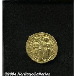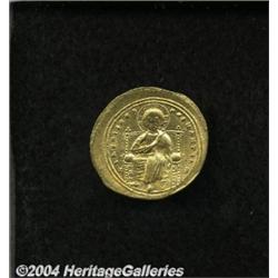 <B>Romanus III.</B></I> 1028-1034. AV histamenon nomisma (25 mm, 4.39 g). Constantinople. Christ enthroned facing, raising right hand in benediction and holding Gospels / Romanus standing facing on left, holding globus cruciger, being crowned by the Virgin standing facing on right. DOC 1c; SB 1819. XF. <BR><I>From the Geneva Collection.</B></I> <BR><BR><B>Important notice:</B> Heritage usually auctions material at the rate of 200-250 lots per hour. On some occasions eBay Live bid software or the Internet may not be able to keep up with the pace of the auction. We recommend placing a realistic absentee bid now as insurance to avoid disappointment. Occasionally the auctioneer may eliminate or reject an eBay Live bid, and the auctioneer may also reopen a lot after the close of the eBay live bidding (usually because we missed an audience bid), and may reject your bid even if it shows you as the winning bidder. By bidding via eBay Live, you agree that Heritage may award the lot to another bidder at its sole discretion under the circumstances described above or any other reasonable circumstances. Since eBay bids are not shown to us until we open the lot on the floor, we treat those bids just like floor bids. In most cases the floor responds before the eBay bid is presented to us, due to Internet lag time, so for consistency we have made it a policy that floor bids are always considered first over tie eBay live bids. Also please note that all Heritage lots purchased through eBay Live carry a 20% Buyer's Premium. Please make sure you read the Terms and Conditions before you bid.