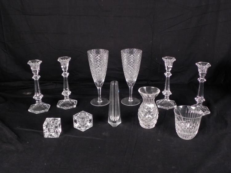 Even though Valentine's Day is over, you can still express how much you love someone with a romantic evening. If you're still struggling on how to start or plan your evening, this lot should begin to solve those problems for you. Offered here is a ten piece crystal glass set-up for that special someone in your life. There are six candlestick holders, two large water glasses, a cocktail glass, and two vases. There sizes range from 2" x 2" - 8" tall. There conditions range from very good to near mint. Now is the time to really sweep that special someone off their feet by bidding on these lovely items today!! *