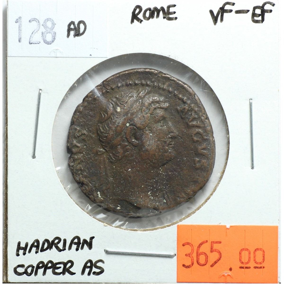 Rome 128 AD Copper As; Hadrian; VF-EF; Reverse - 'Salus, Feeding from Patera, a Snake Held in Her Arms'