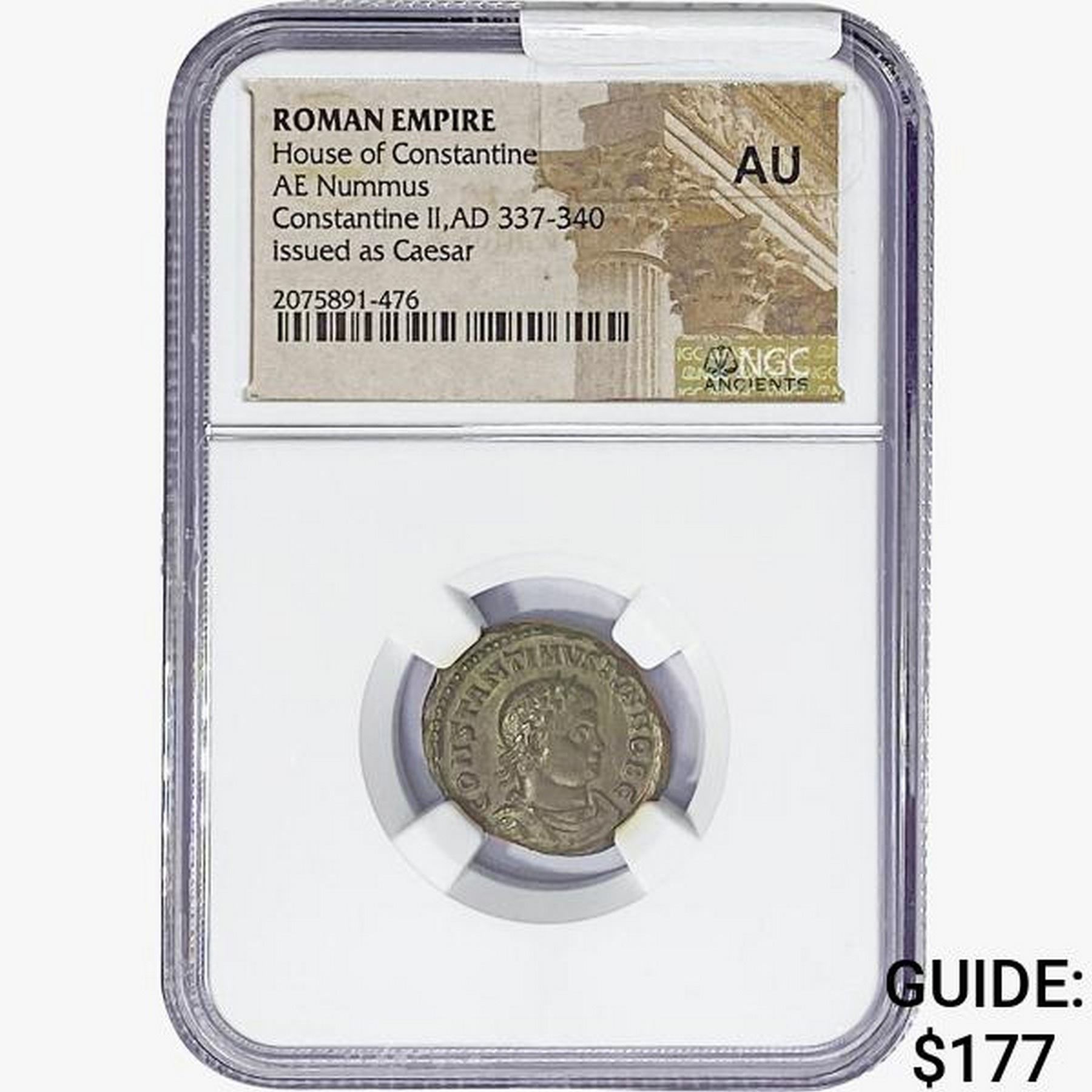 Rome Constantine II AD 337-340 Bronze Nummus Issued as Caesar NGC AU