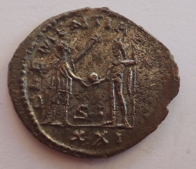 Emperor receiving globe with Victory from Jupiter. Some original silvering aEF