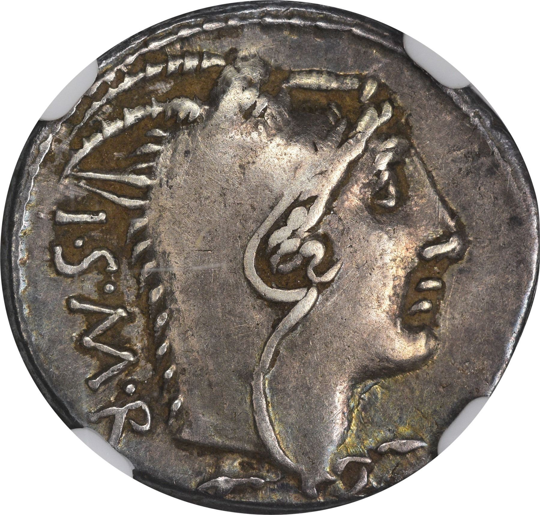 Description: Dies as illustrated. Strike: 5 of 5. Surface: 3 of 5. 3.91 grams. This steel-gray denarius from Rome’s Republic era affords a soft golden glow on both sides. Smooth throughout with the only marks of note a faint, old vertical reverse scratch from the rim at the noon position downward to the horse’s shoulder, a few faint hairlines in the same area. Juno Sospita/rearing horse.