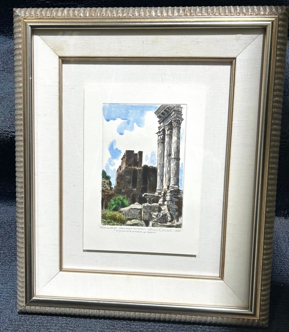 A Unique hand-painted acrylic over limited edition etching by renown Milan artist Ernesto Ornati (1988), 8x4.5" on 20x14" paper, framed to 23x18.5" .