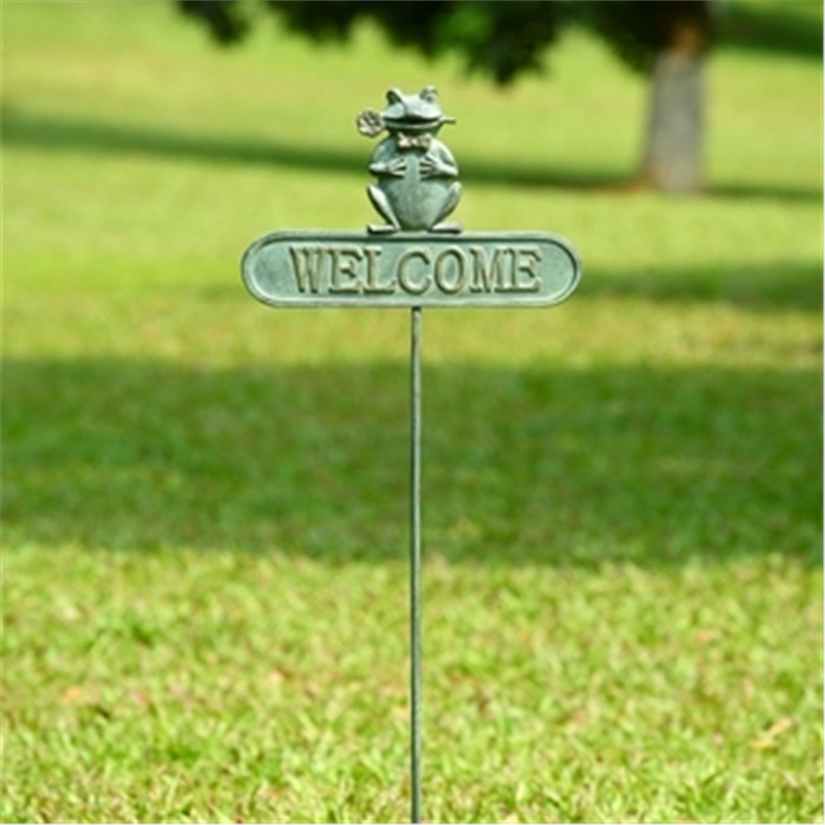 Romeo Frog Welcome Sign - 45.5"H 15"W 1.5"D - Aluminum & Iron
