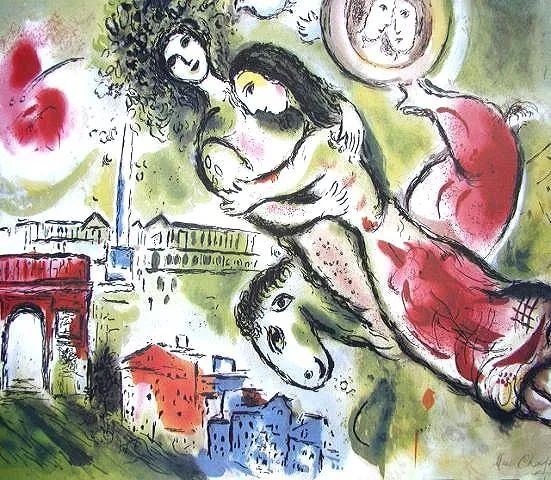 Romeo and Juliet Lithograph by Marc Chagall. Litograph on archival paper, measures 23 inches x 35.5 inches. Comes with certificate of authenticity. Item comes unframed.