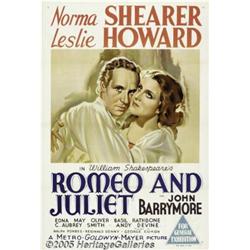 <B>Romeo and Juliet (MGM, 1936)</B></I> Australian One Sheet (27" X 41"). William Shakespeare's tragic romance has been filmed many times over the years, but no one gave it the "studio" look like MGM. Legendary producer Irving Thalberg cast his wife Norma Shearer in the role of Juliet, and the part earned her a fifth Oscar nomination. Her husband was nominated as producer (Best Picture) even though he died shortly after the film's release. Typical for the Australian one sheets from this period, the poster essentially uses the same art as its U.S. counterpart but in stone litho. This poster is unused and shows virtually no wear whatsoever. Near Mint/Mint.