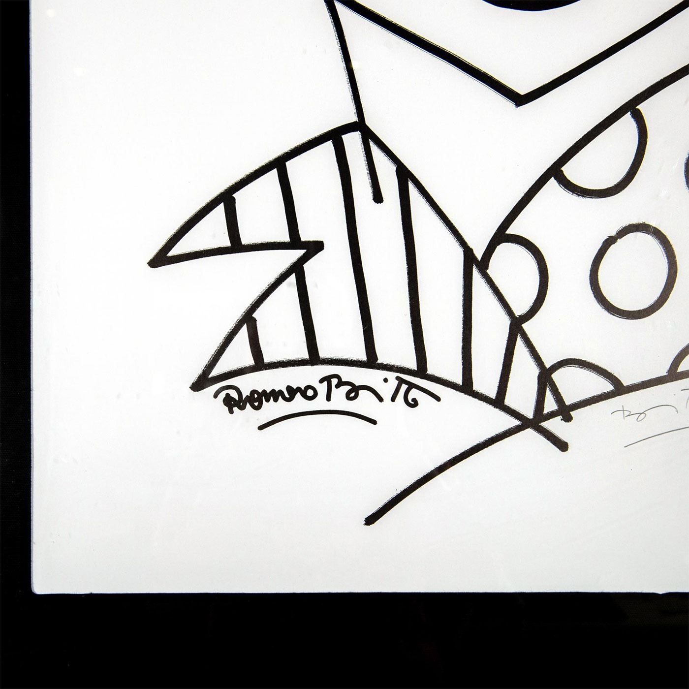 Abstract print, pencil hand signed by artist, lower right. Housed in a black frame with black fillet. Some damage to frame. Romero Britto combines elements of cubism, pop art, and graffiti painting in his work, using vibrant colors and bold patterns as a visual expression of hope, dreams, and happiness. #popart #cubism #california