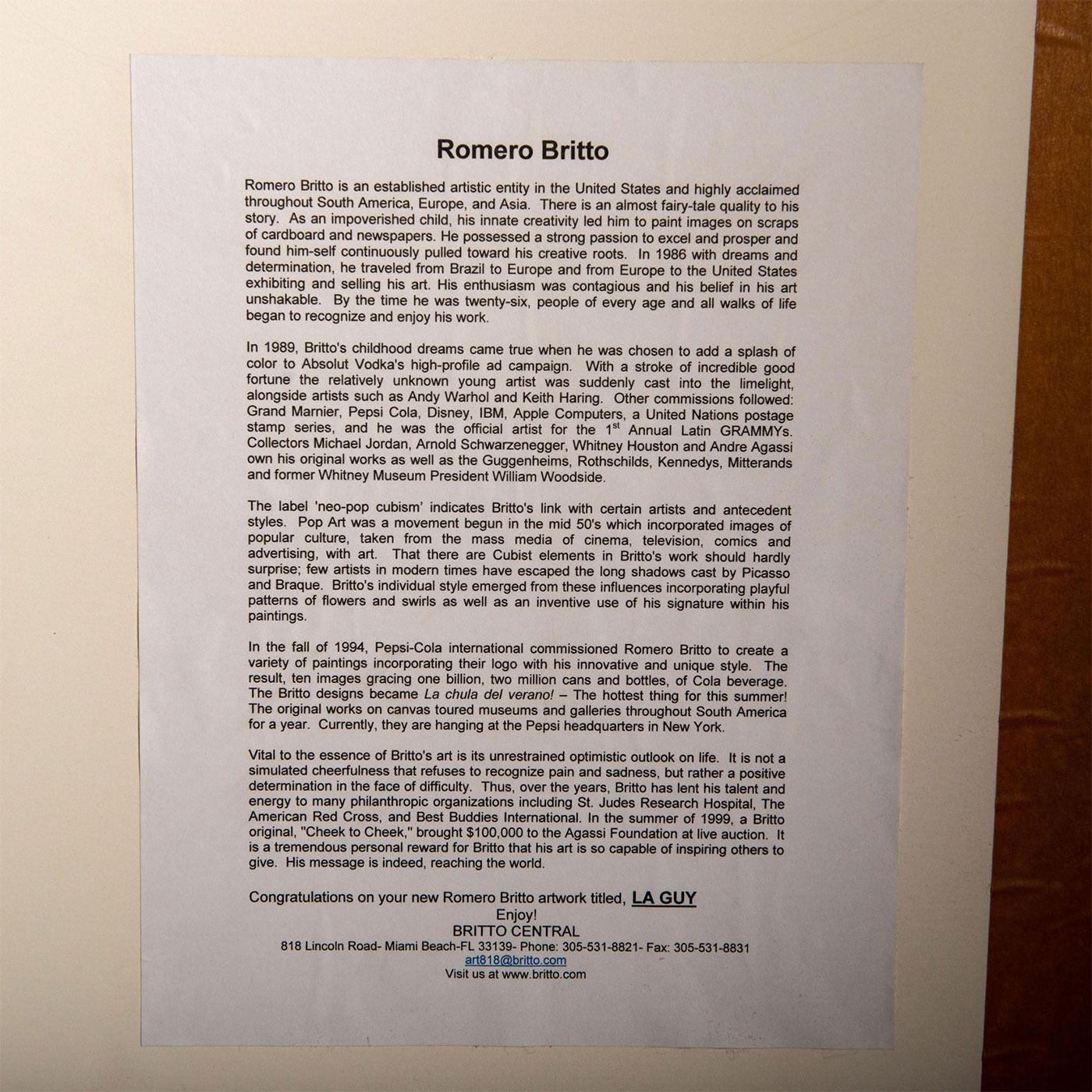 Romero Britto (Brazilian b. 1963) Abstract Print, L.A. Guy, Signed