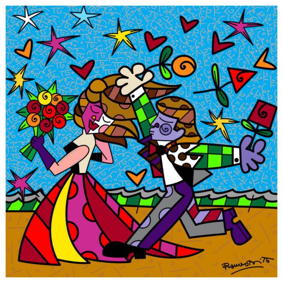 "I Love You" is a limited edition giclee on canvas by Romero Britto. The piece is numbered, hand signed by the artist, and comes with a Certificate of Authenticity. Measures approximately: 20" x 20". Reference #: 234540.