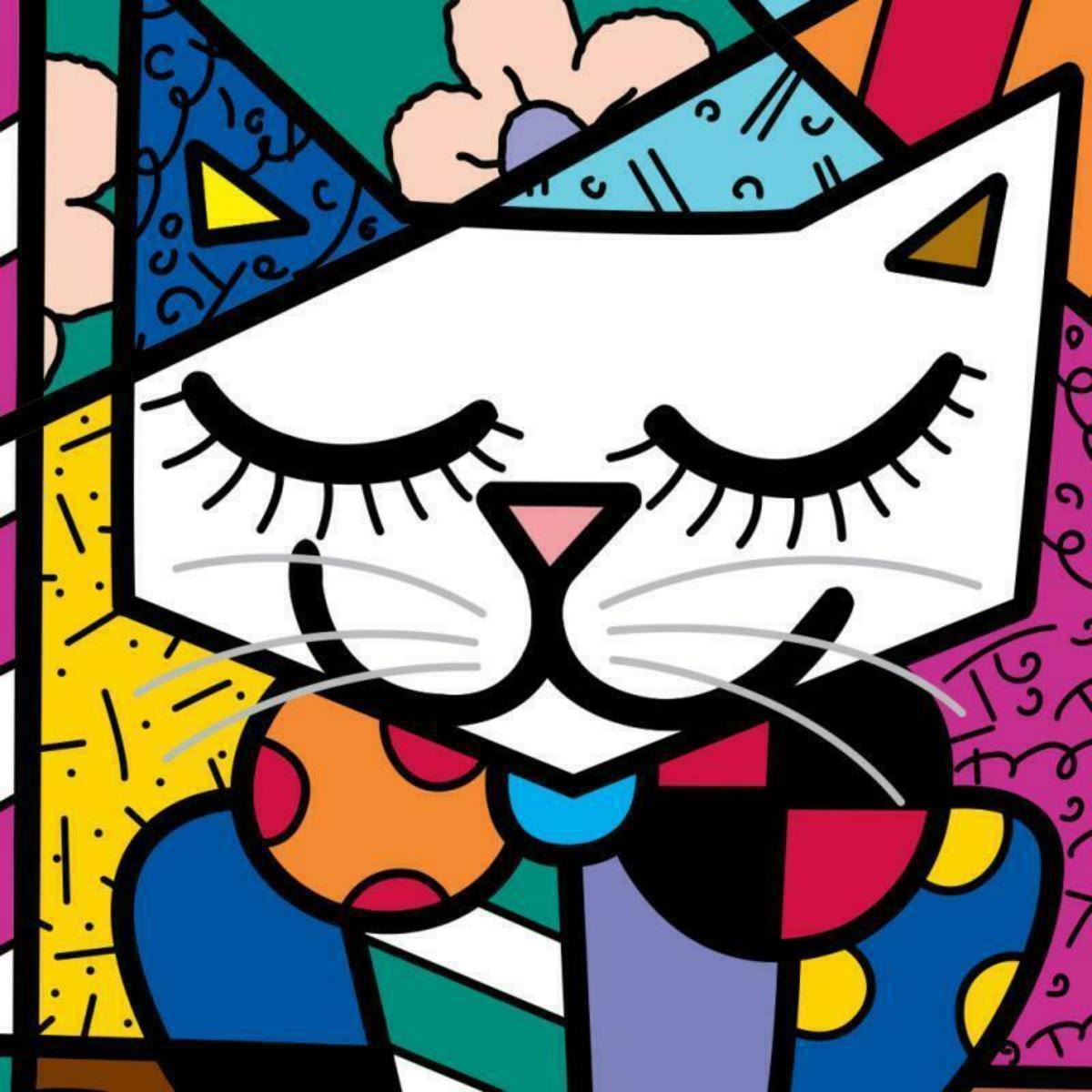 "New Sam Cat" is an open edition giclee on canvas by Romero Britto. The piece comes hand signed by the artist and is authenticated en verso with the official Britto stamp. Measures approximately: 14" x 11". Reference #: 239749.
