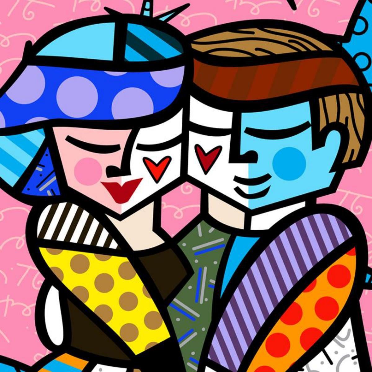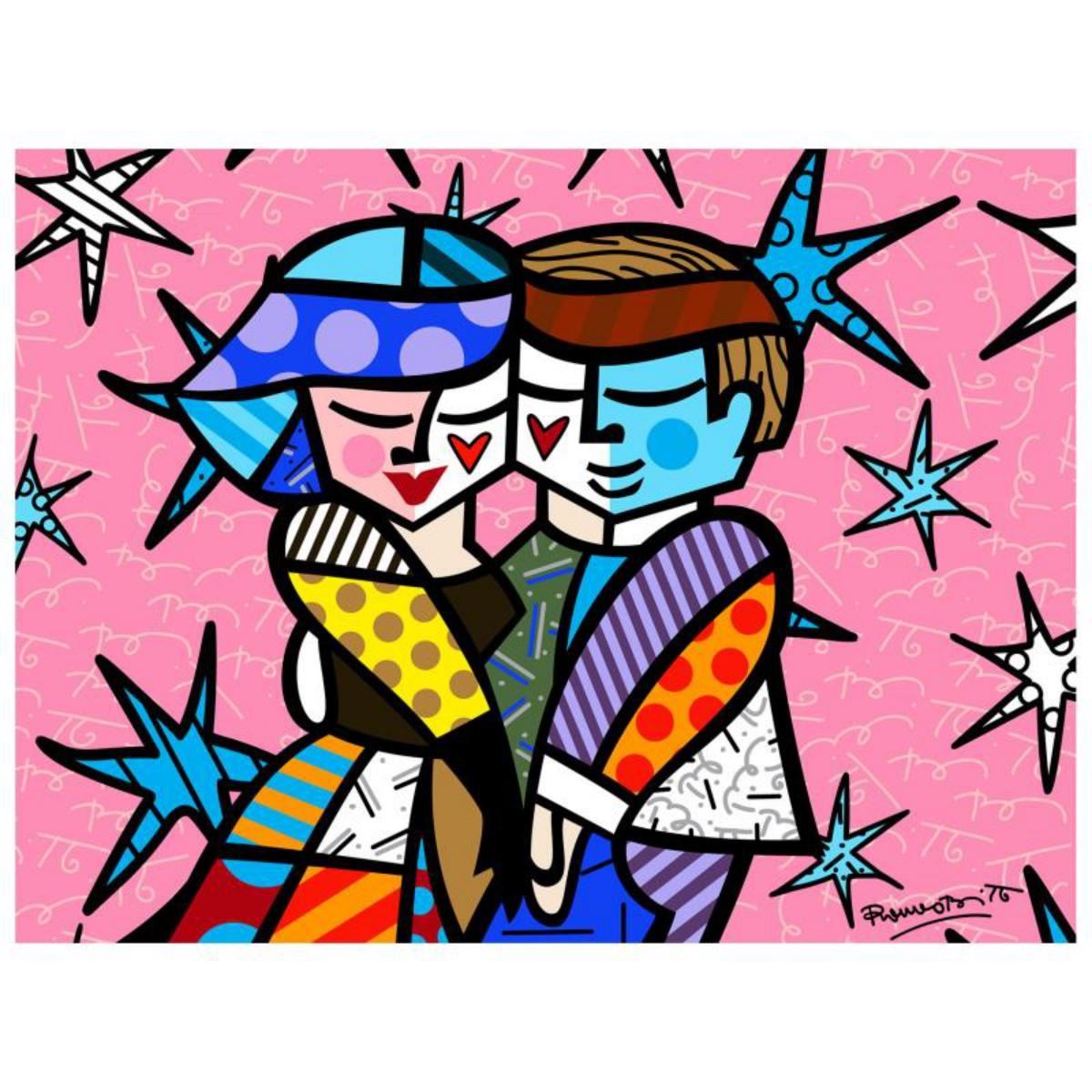 "Pretty In Pink Mini" is an open edition giclee on canvas by Romero Britto. The piece comes hand signed by the artist and is authenticated en verso with the official Britto stamp. Measures approximately: 6.5" x 8.75". Reference #: 234557.