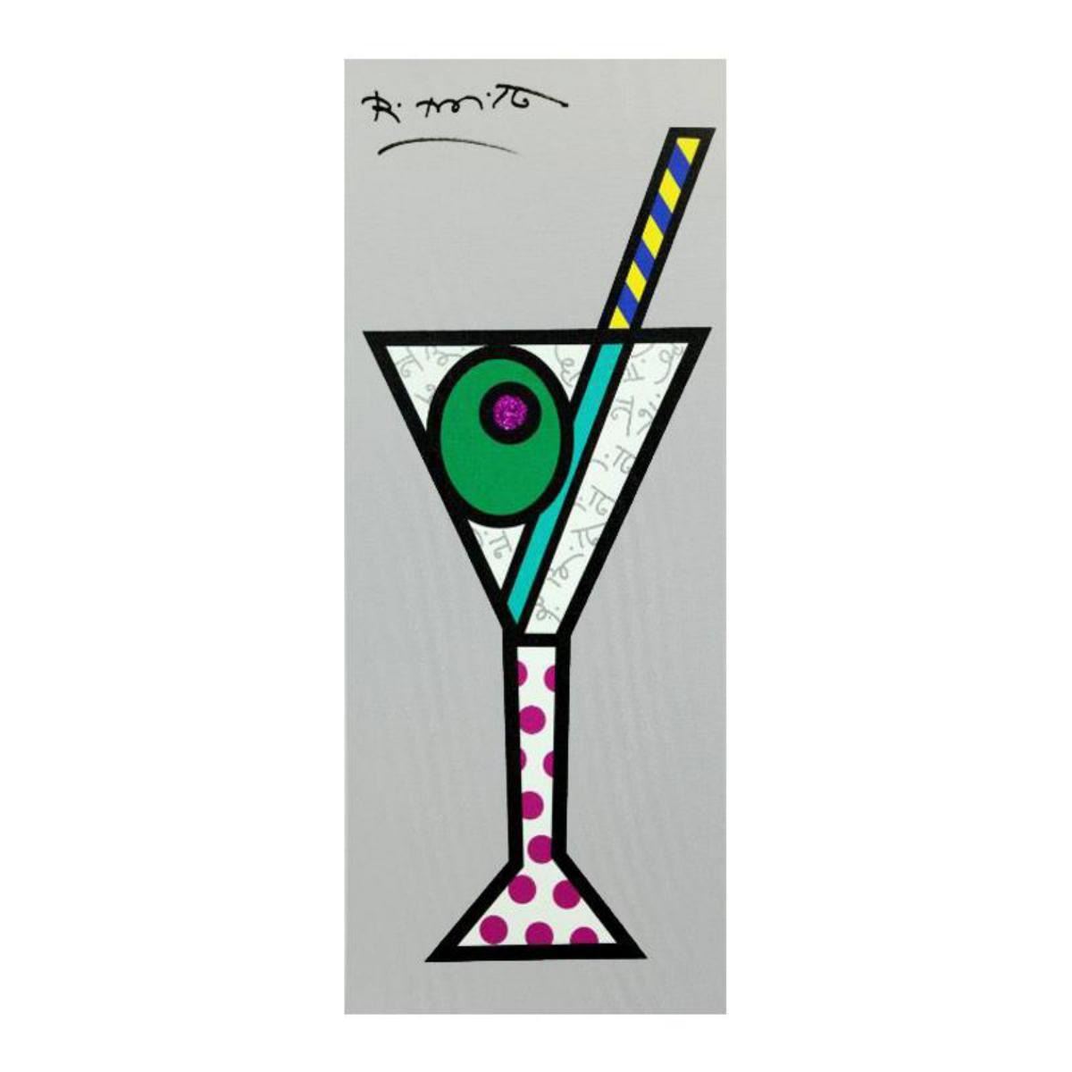 "Silver Martini" is a accented limited edition giclee on canvas with by Romero Britto. The piece comes hand signed by the artist and is authenticated en verso with the official Britto stamp. Measures approximately:25" x 10" Reference #: 237568.
