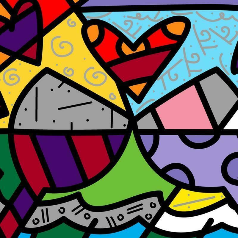 "Toast To Love Glasses" is a limited edition giclee on canvas by Romero Britto. The piece is numbered, hand signed by the artist, and comes with a Certificate of Authenticity. Measures approximately: 16" x 20".