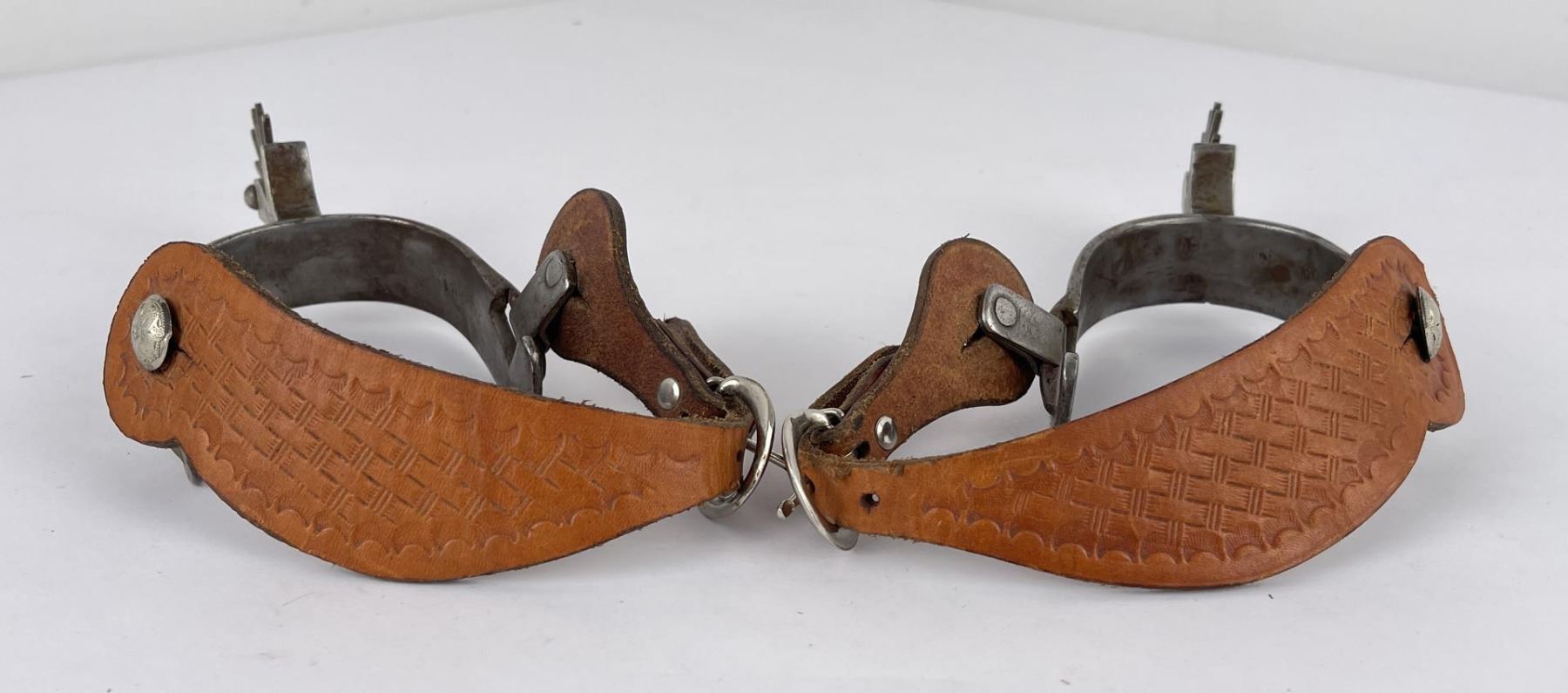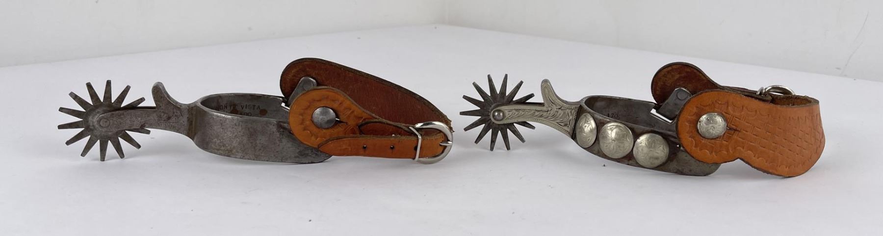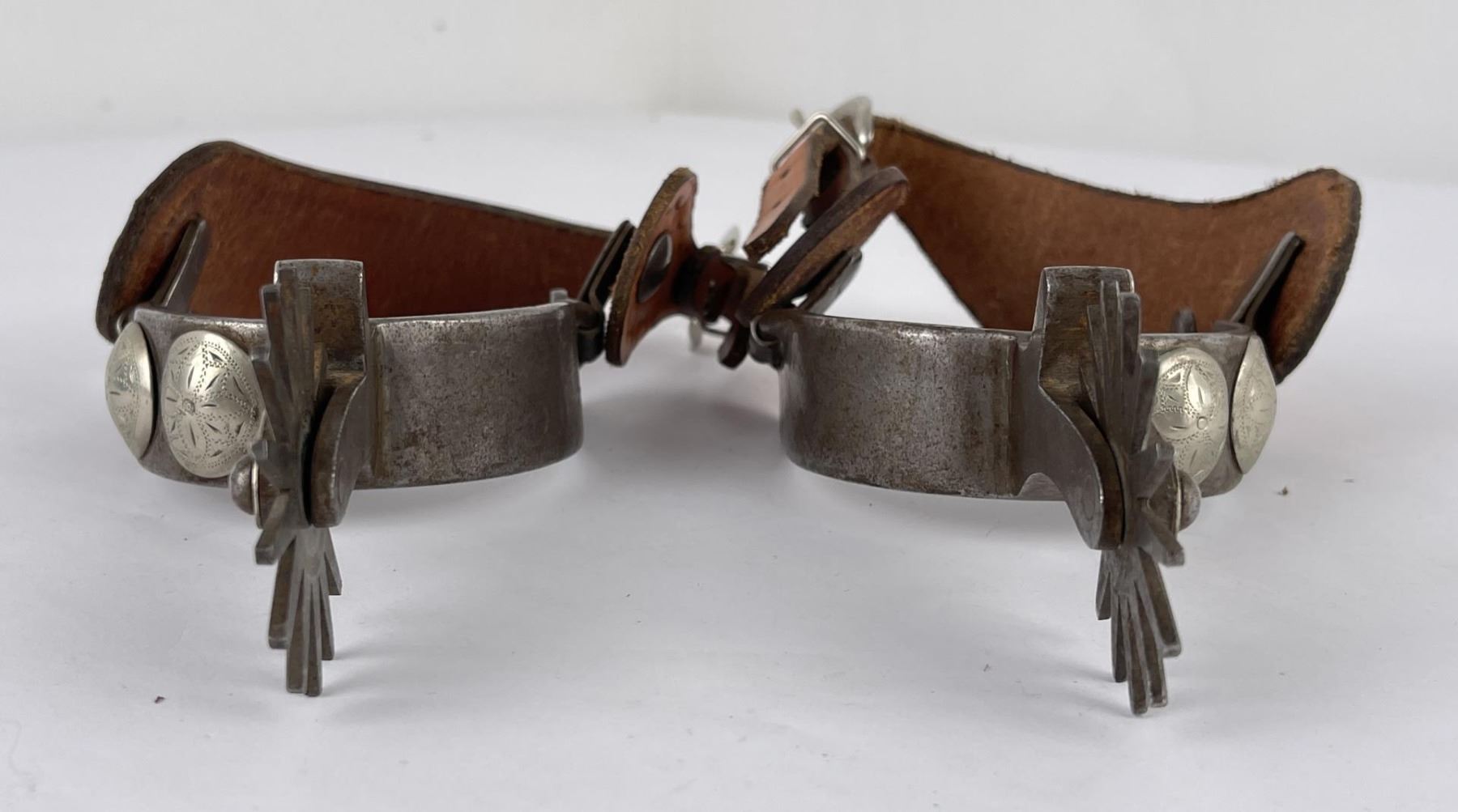 Nice pair of spurs. Marked Ron Bliss. Ron Biss grew up as a working cowboy taking-up spur making after a horse accident curtailed his riding in 1999. He is largely self-taught drawing inspiration from the more creative, early California Vaquero spur makers like GS Garcia and Jesus Tapia.