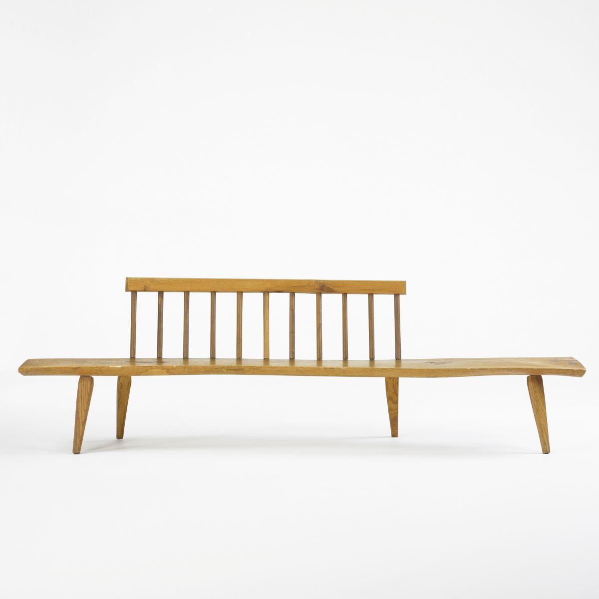 Bench features two butterflys and two free edges with sap grain detail. Incised signature and date to underside: [R Curtis 68] with branded artist's cipher.